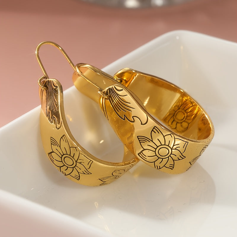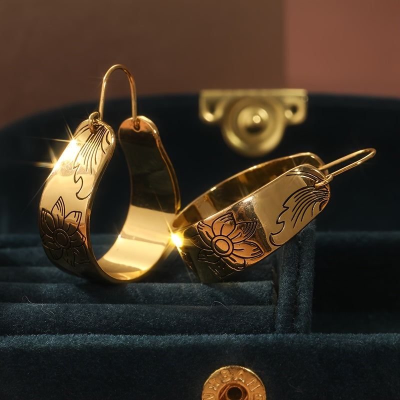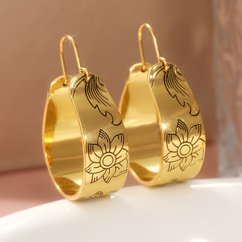 Bohemian Floral Carving Earrings KC Golden Plated