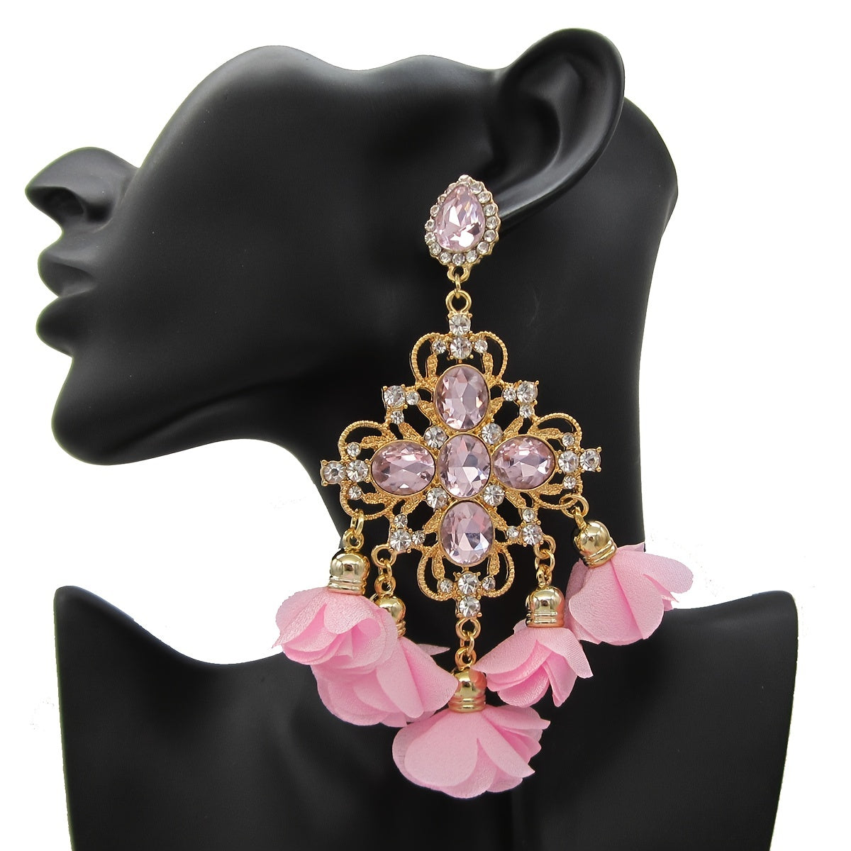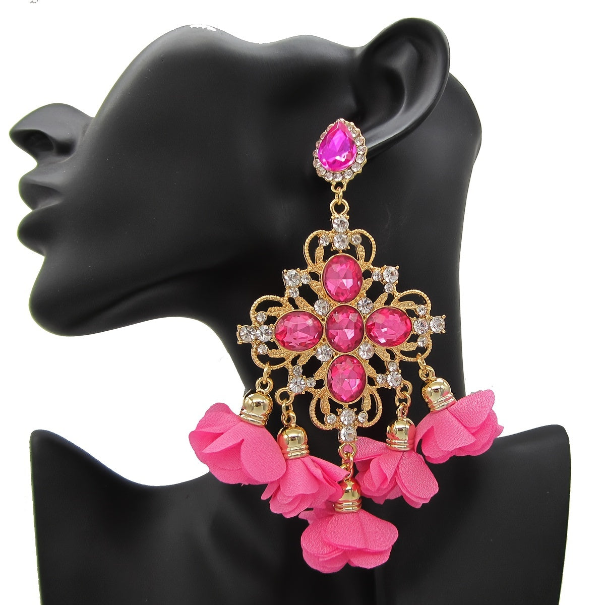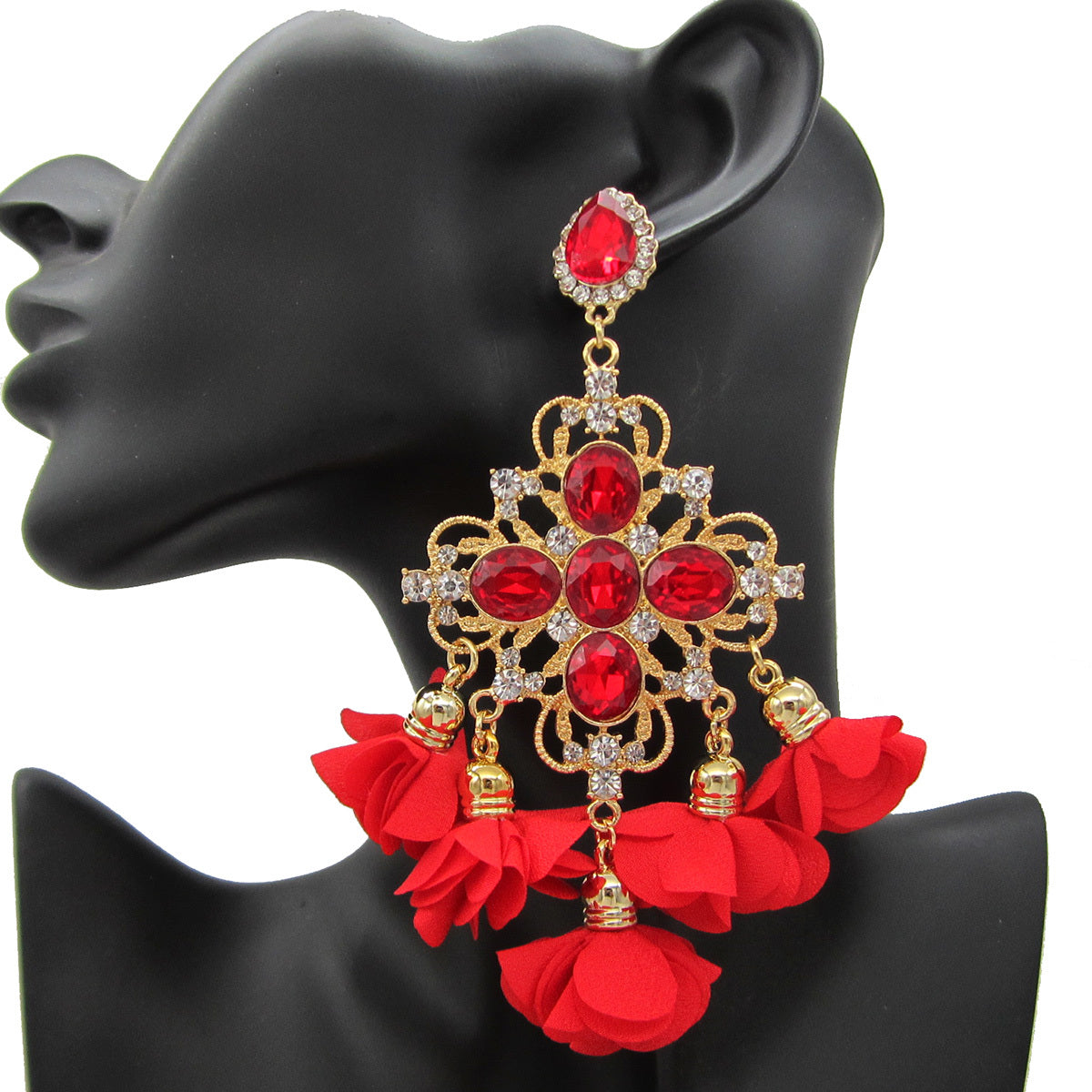 Add a touch of elegance to your outfit with these stunning bohemian large pendant earrings. Made with high-quality materials and featuring a golden drop design, these earrings are perfect for women who love unique jewelry pieces.