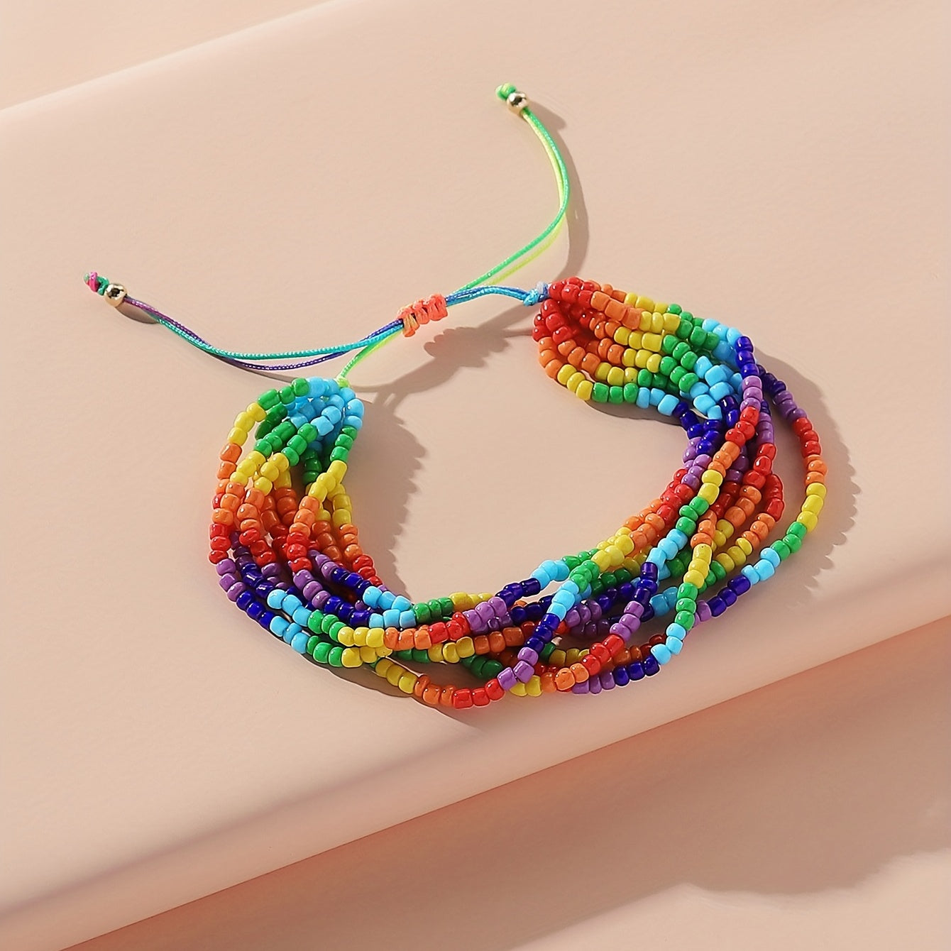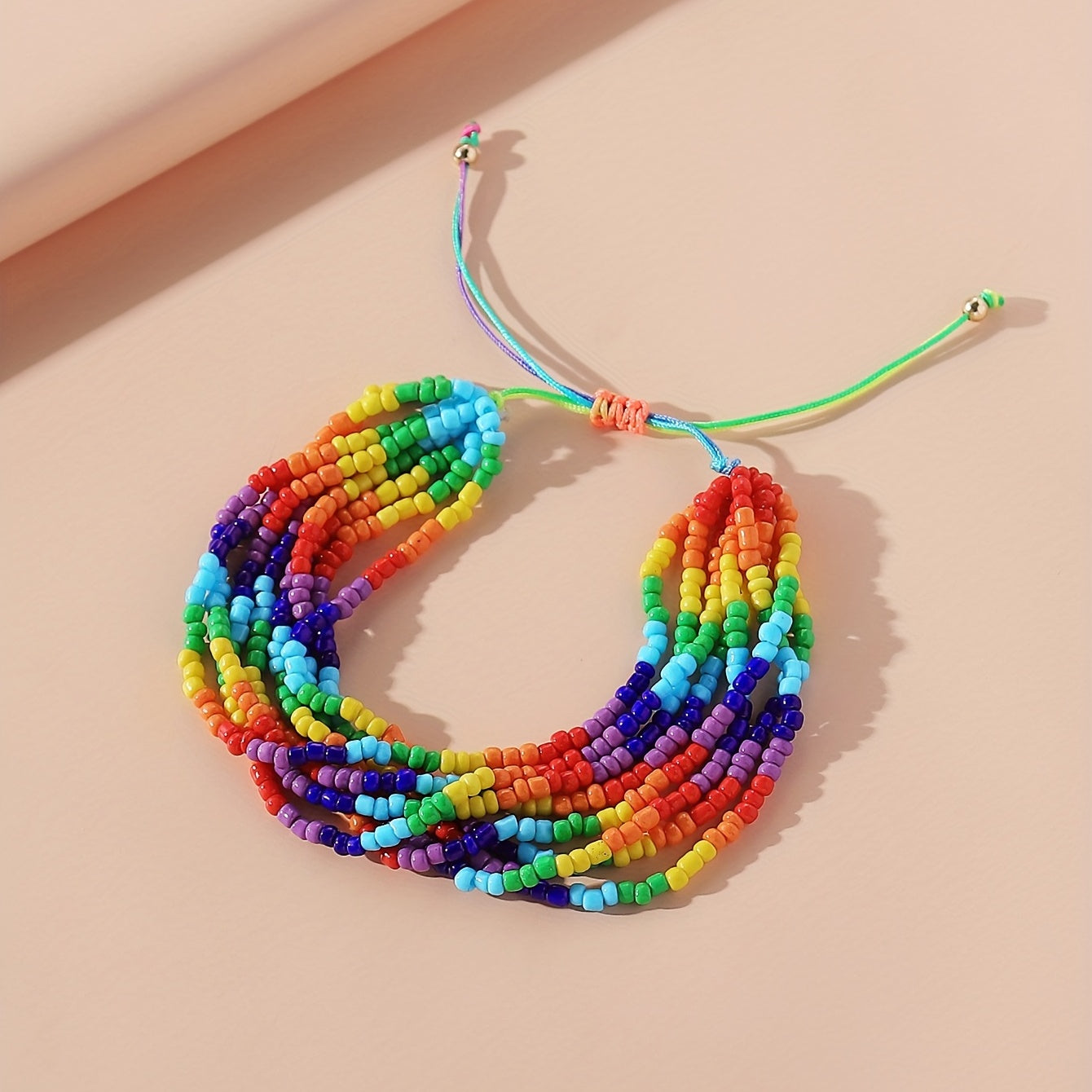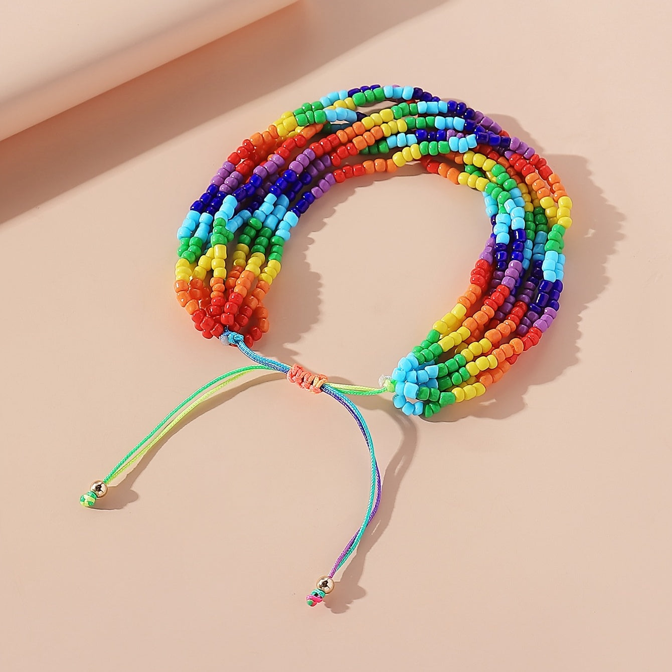 Add a touch of bohemian flair to your summer vacation look with this multilayer rainbow rice beads anklet. Perfect for beach days and versatile enough to complement any outfit.