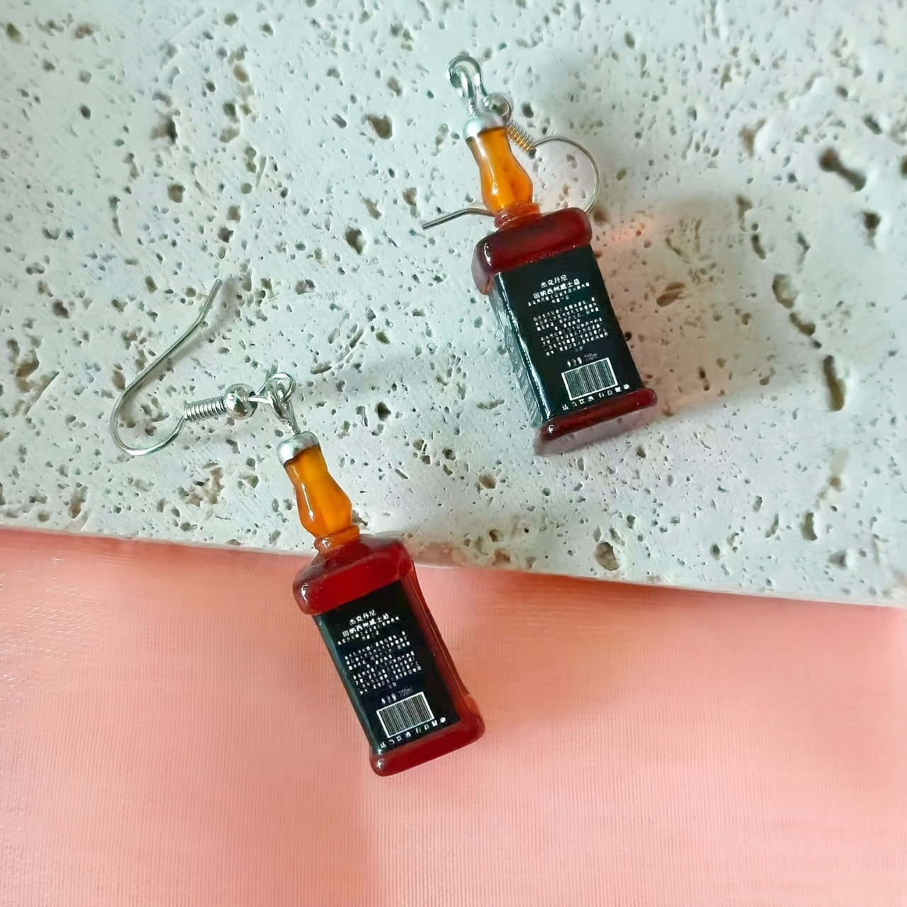 • Vintage-inspired bohemian resin wine bottle earrings