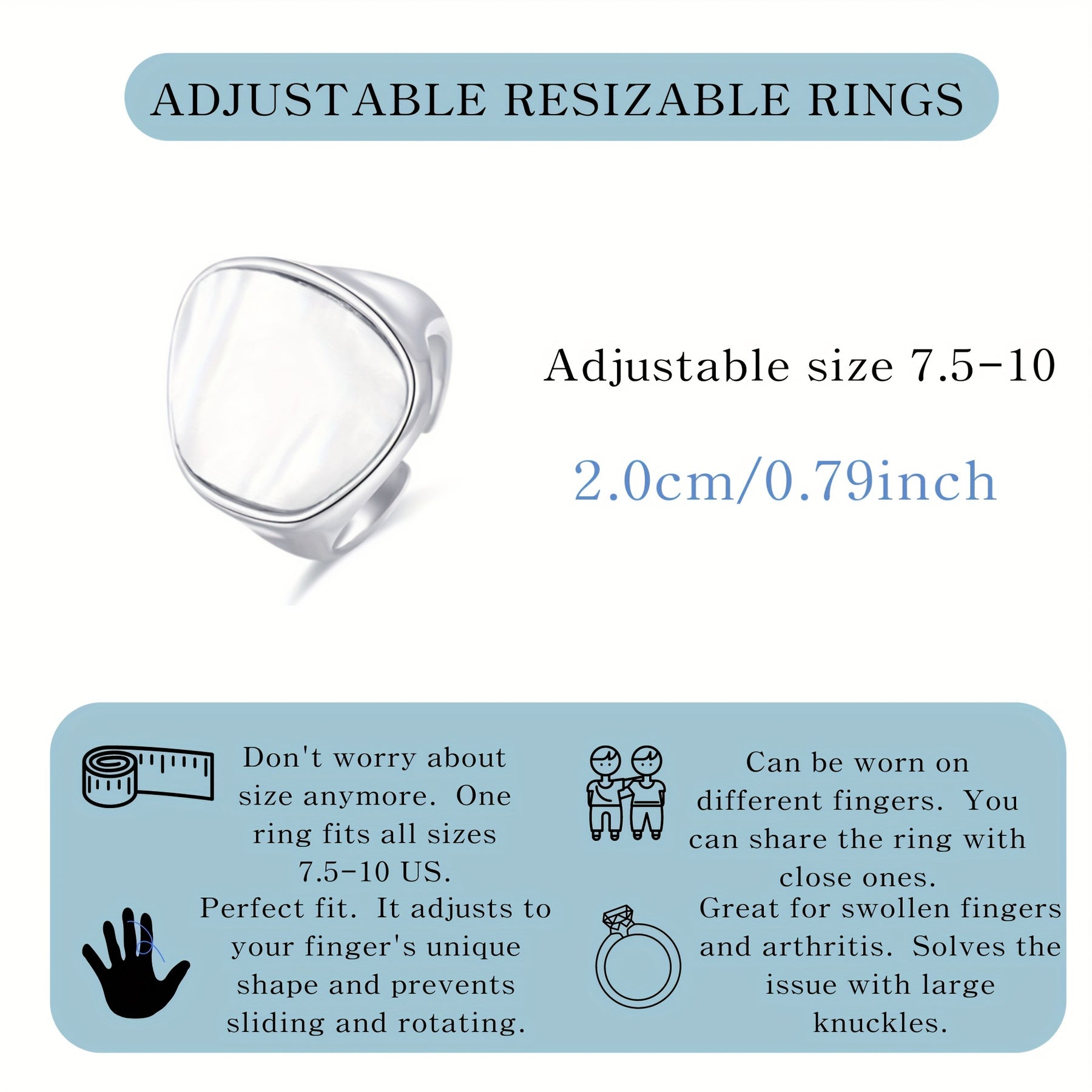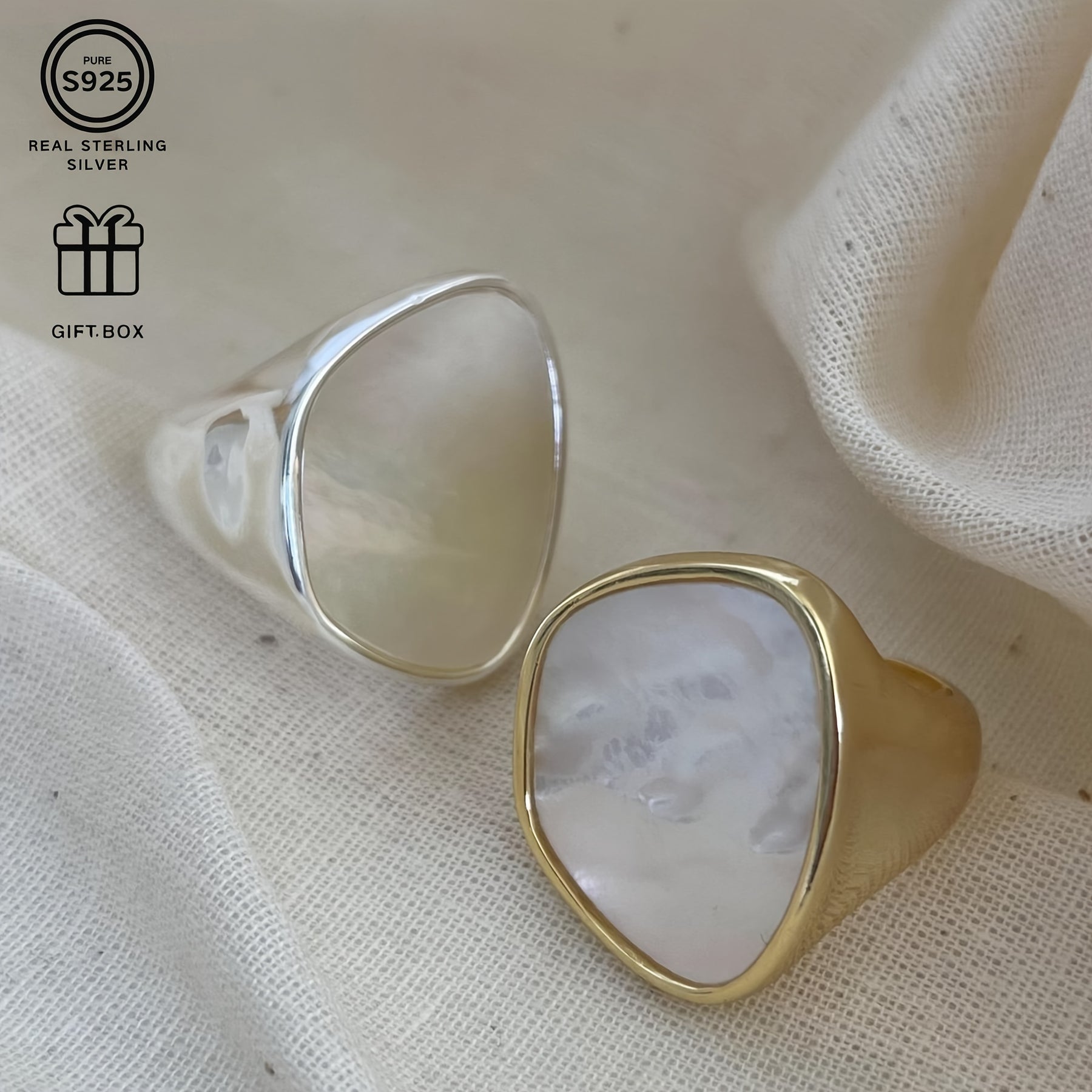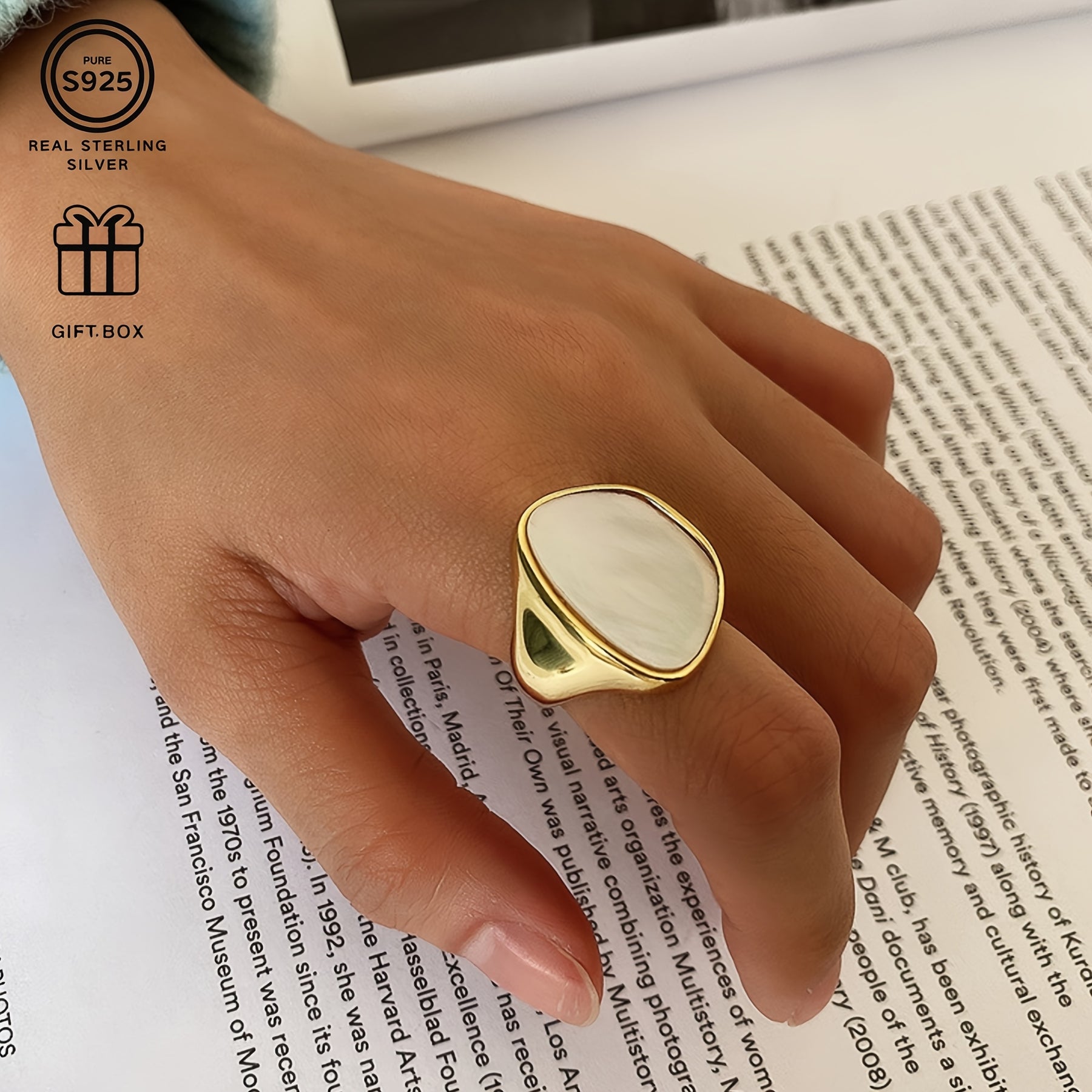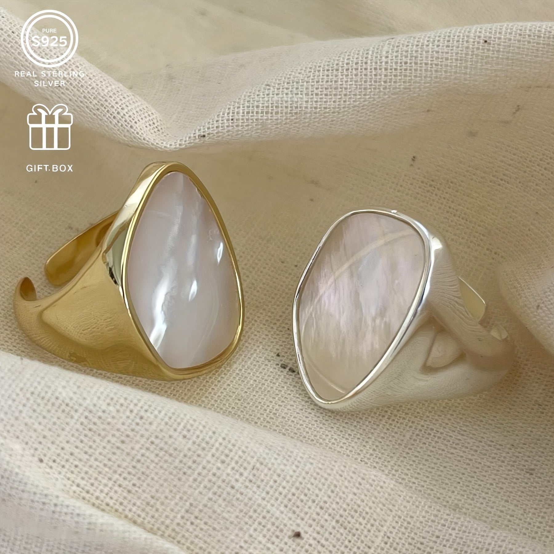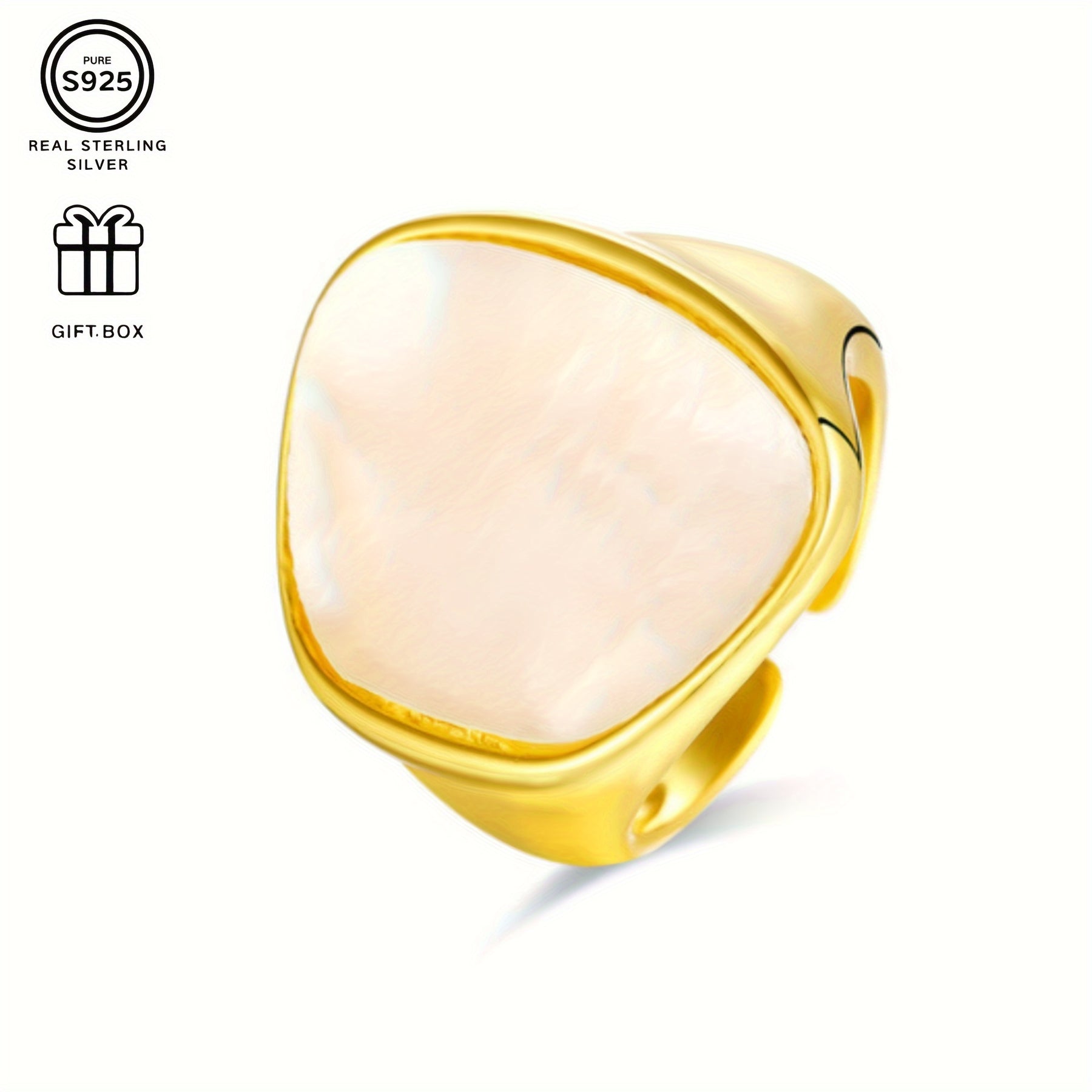 Adorn your fingers with this adjustable open ring featuring natural mother of pearl. The versatile design is ideal for daily wear and makes a perfect gift for any occasion.