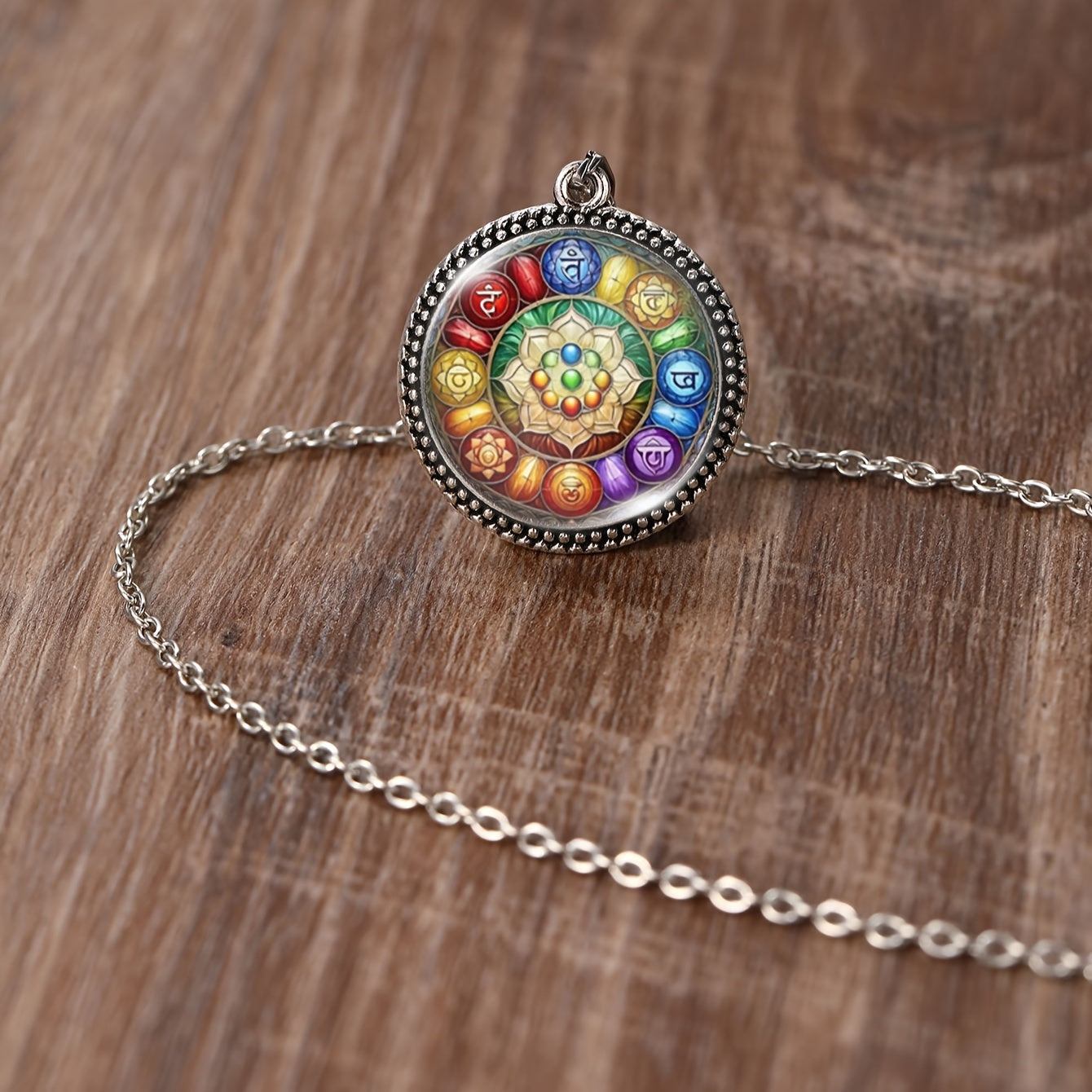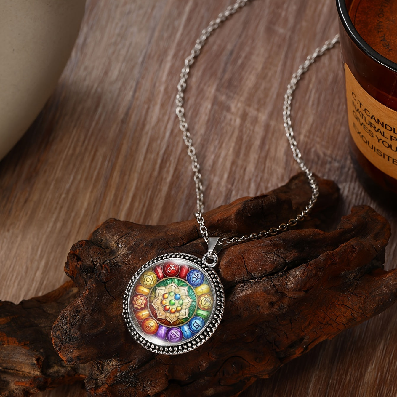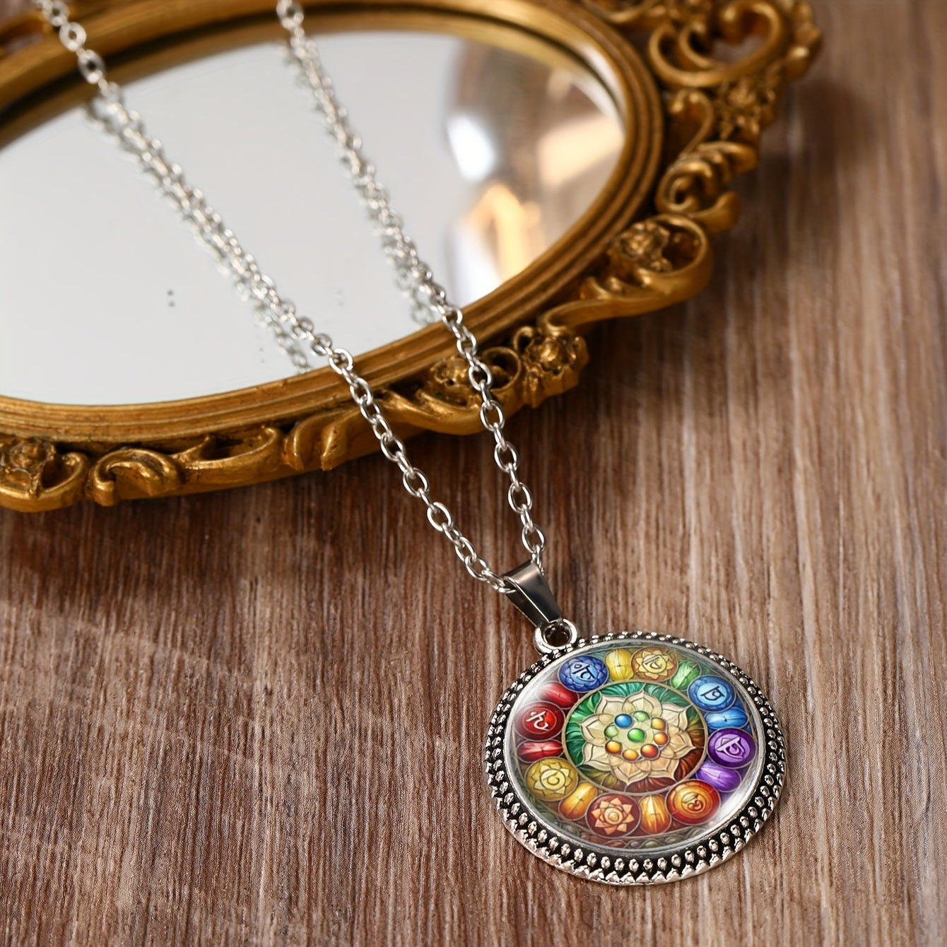 This stunning Boho necklace features 7 chakra symbols in a glass mosaic design, perfect for yoga enthusiasts. Made of high-quality alloy, it's an ideal gift for anniversaries, birthdays, or parties.