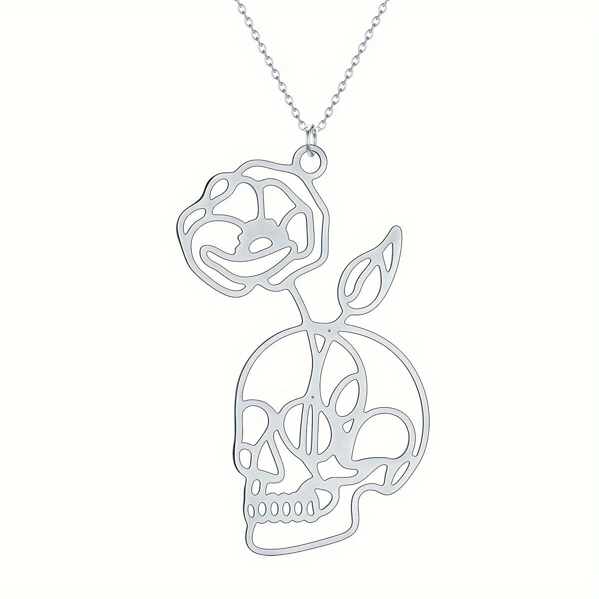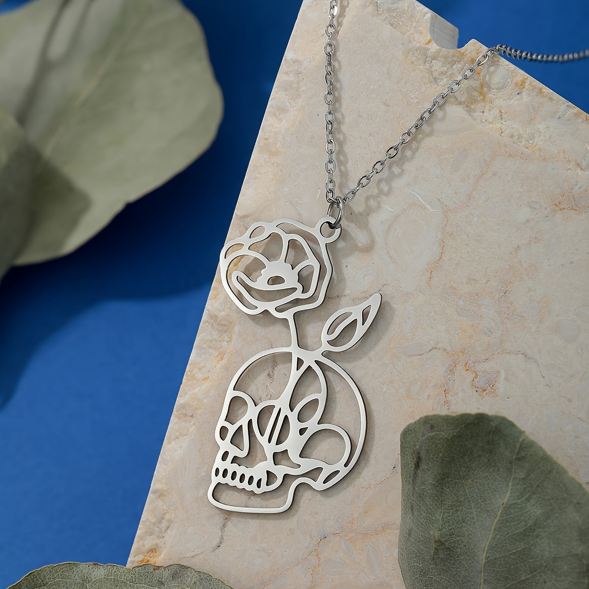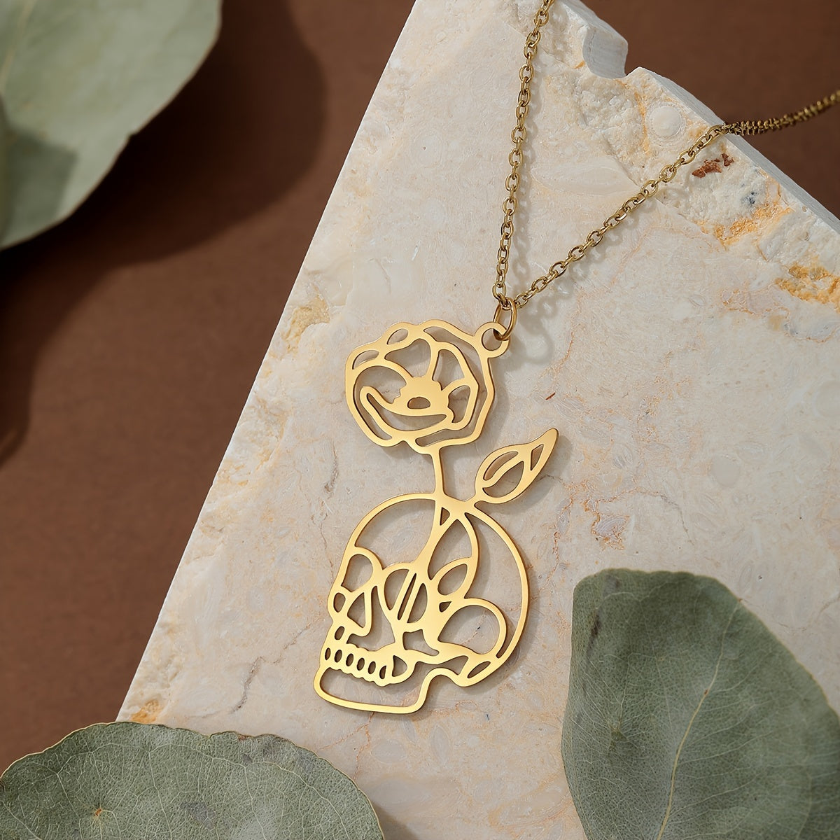Stylish boho stainless steel necklace featuring a birth flower pendant and skull detail. Perfect party accessory or gift for women with a bohemian style.