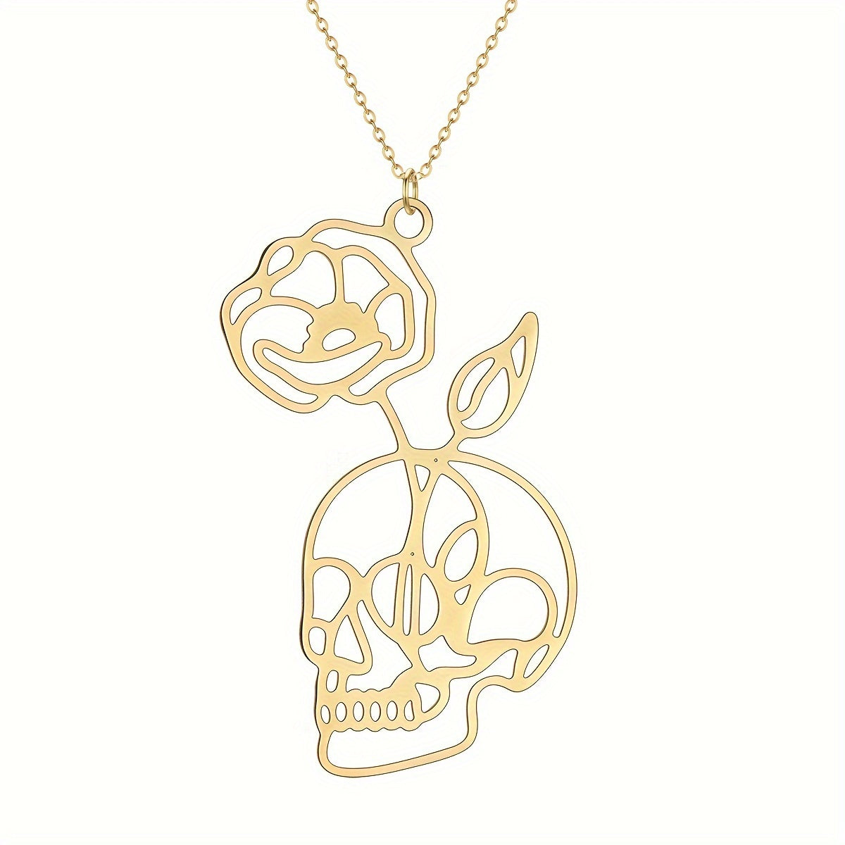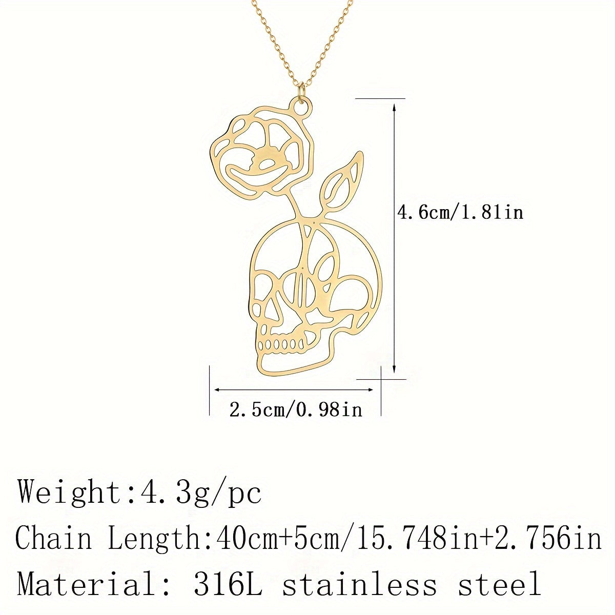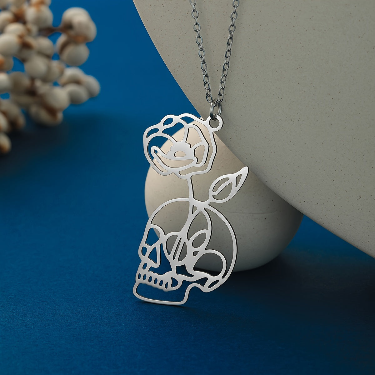 Stylish boho stainless steel necklace featuring a birth flower pendant and skull detail. Perfect party accessory or gift for women with a bohemian style.