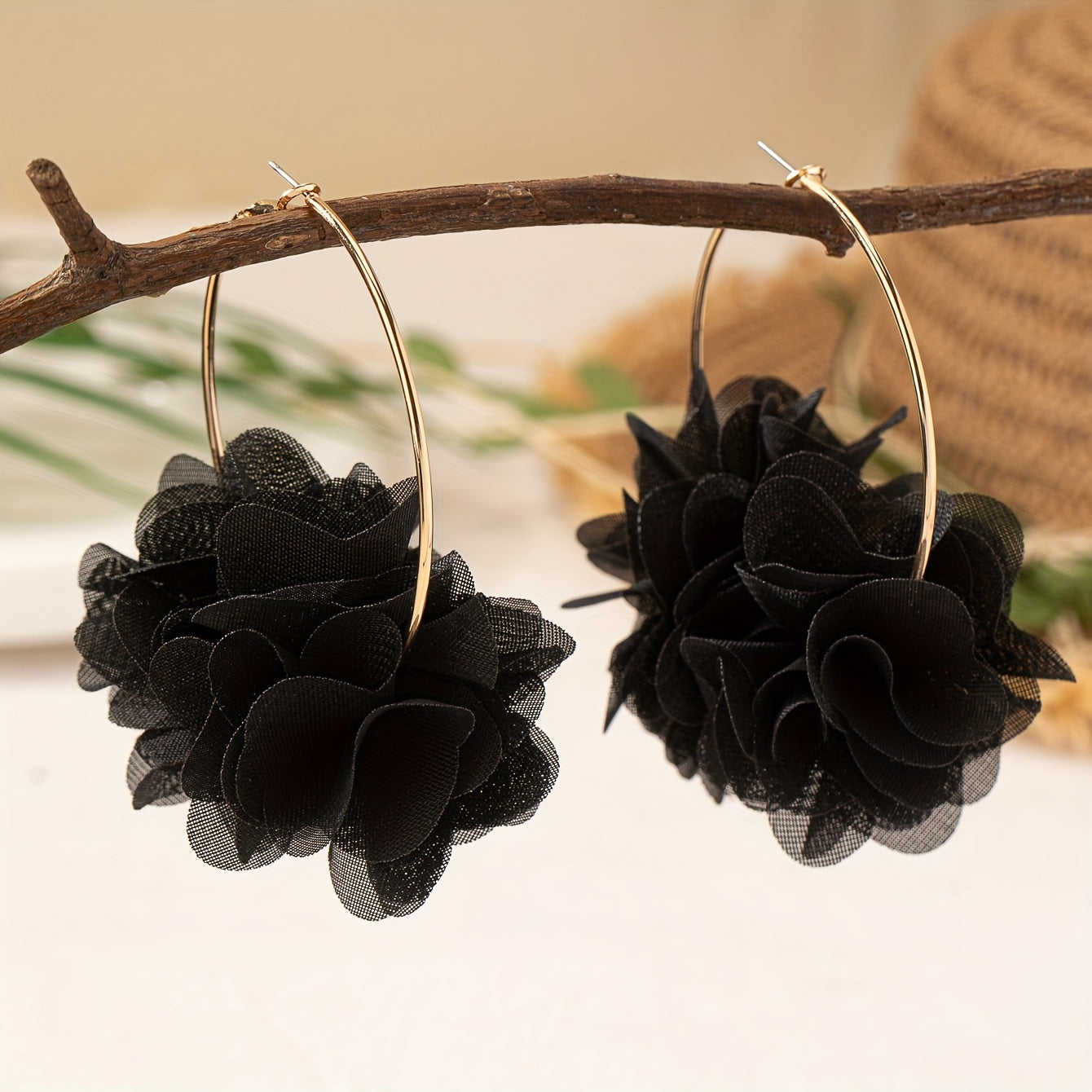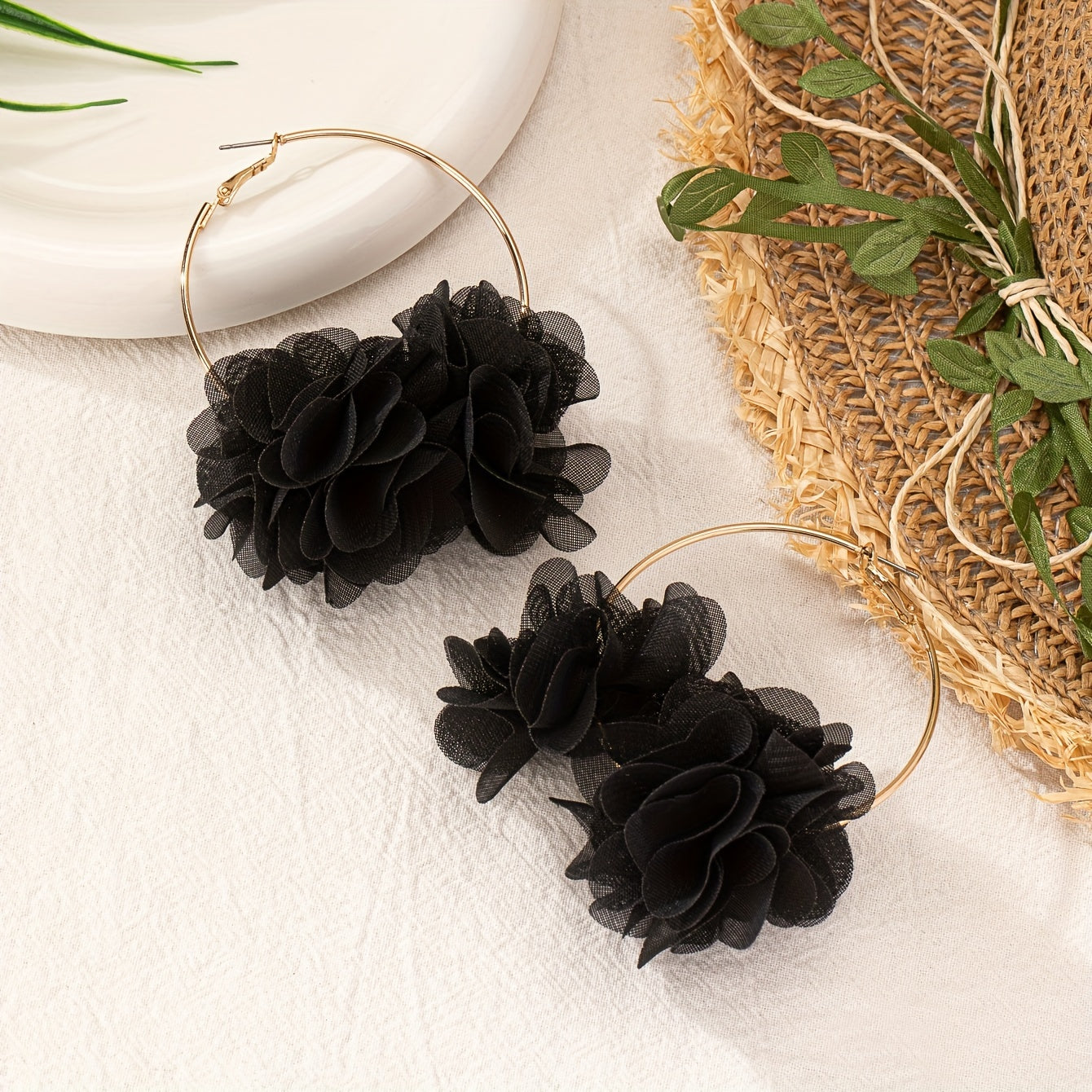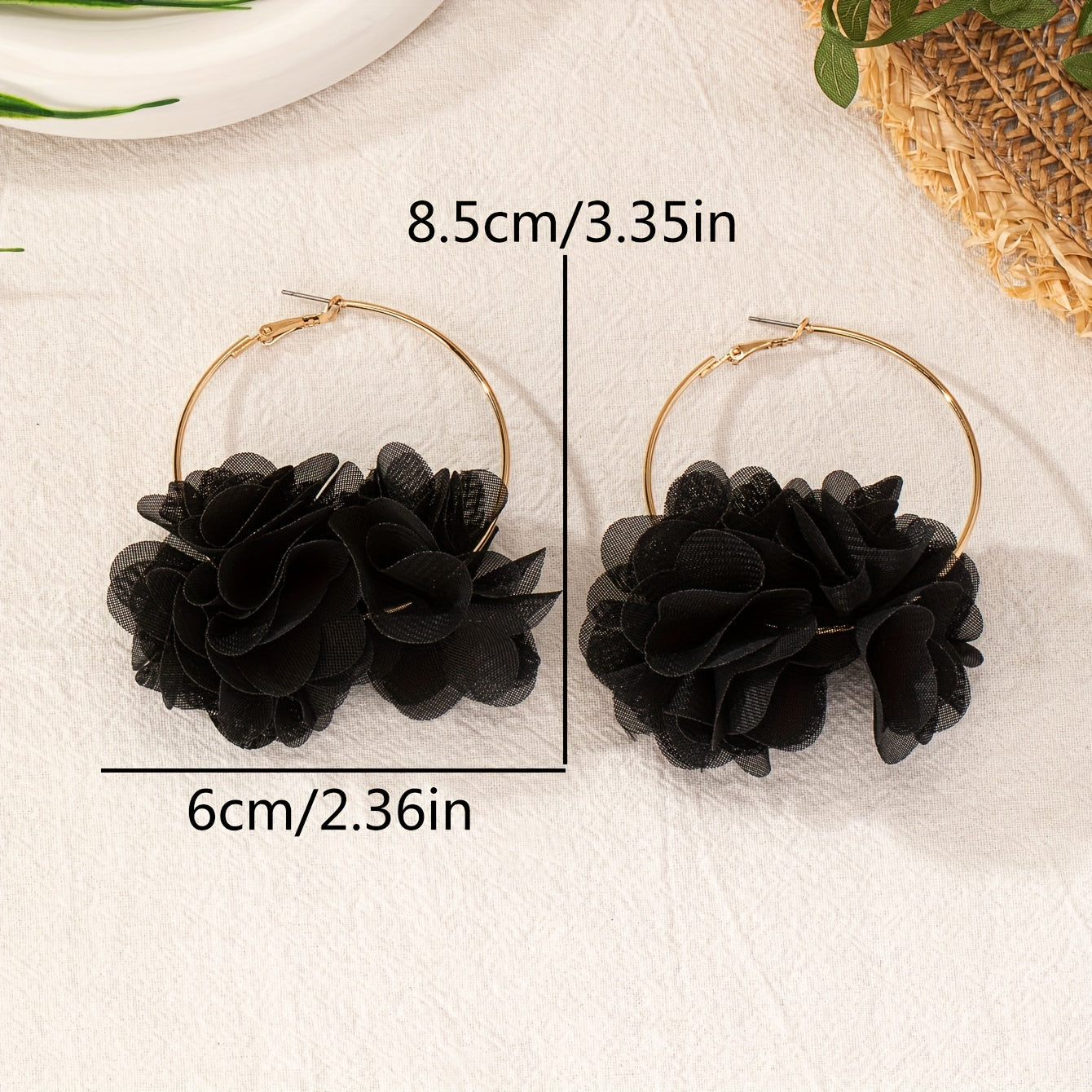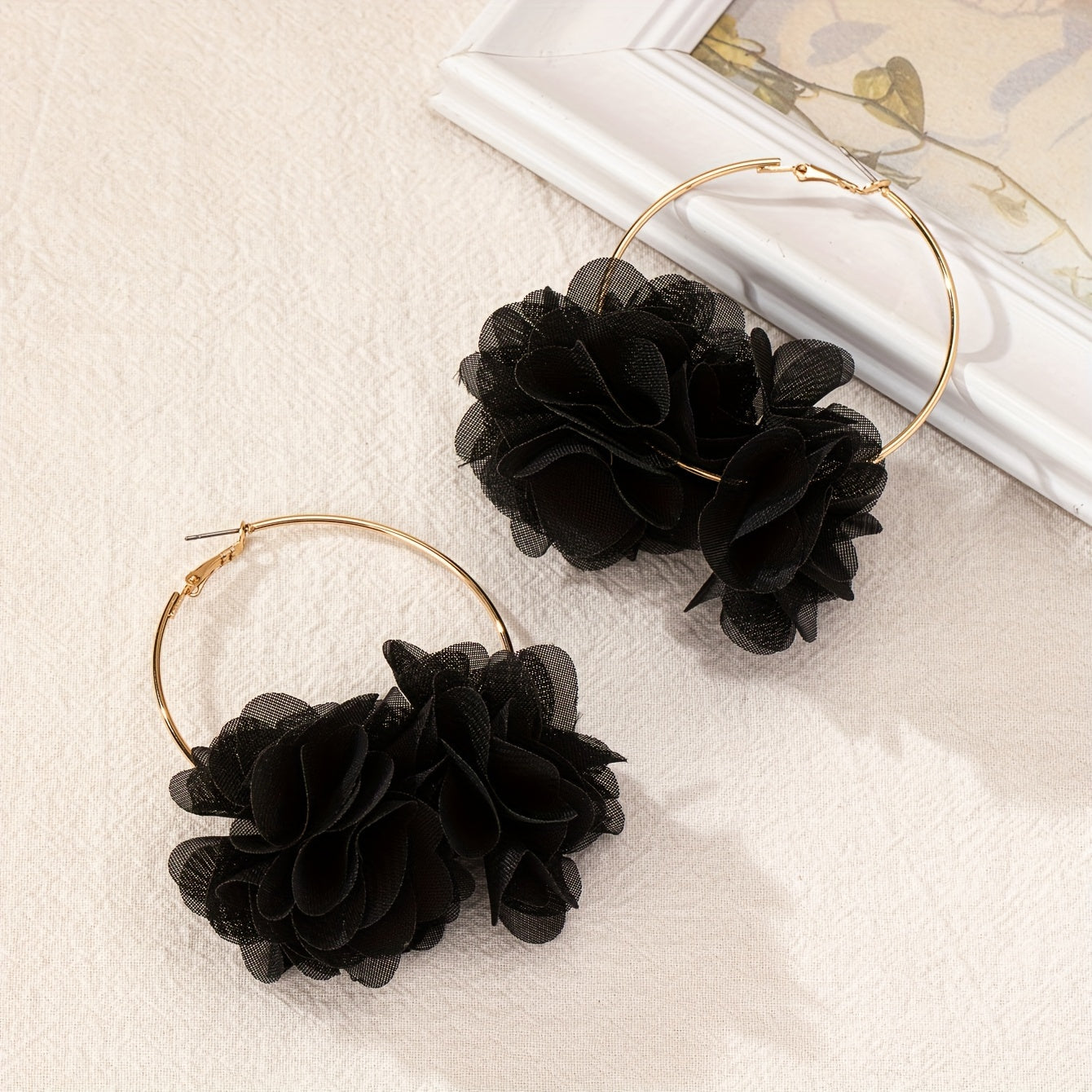 Boho Floral Fabric Hoop Earrings Stainless Steel Posts Versatile