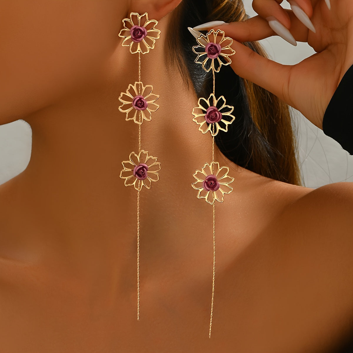 • Boho Floral Tassel Drop Earrings