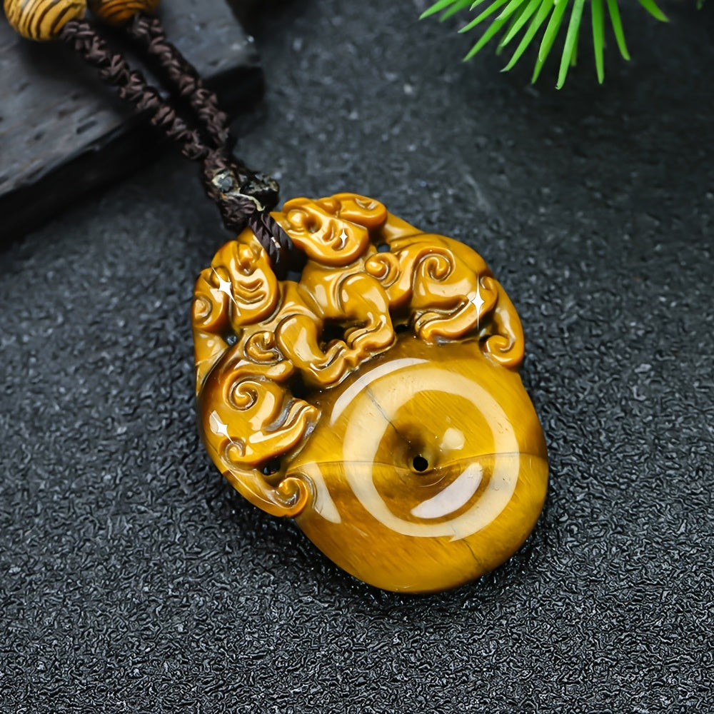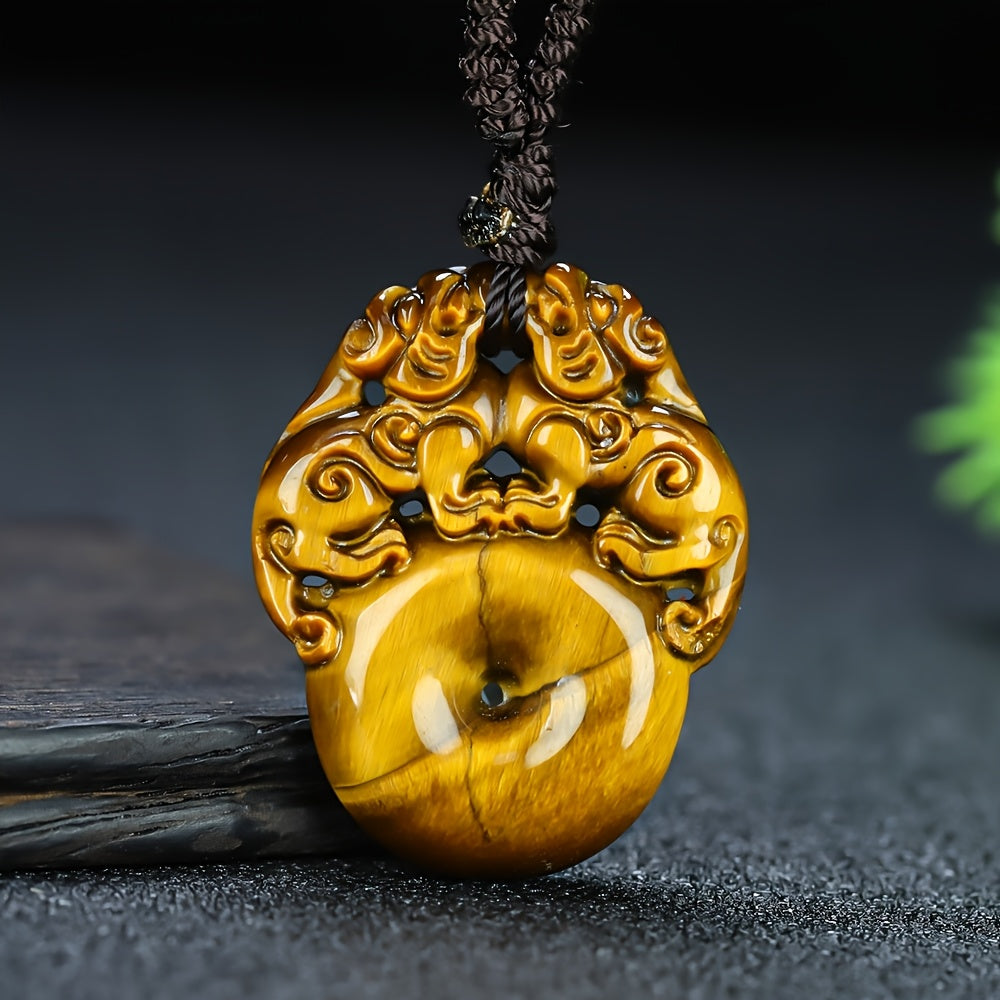 Boho Men's Double Tiger's Eye Pendant Necklace