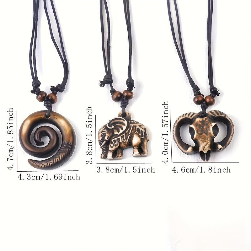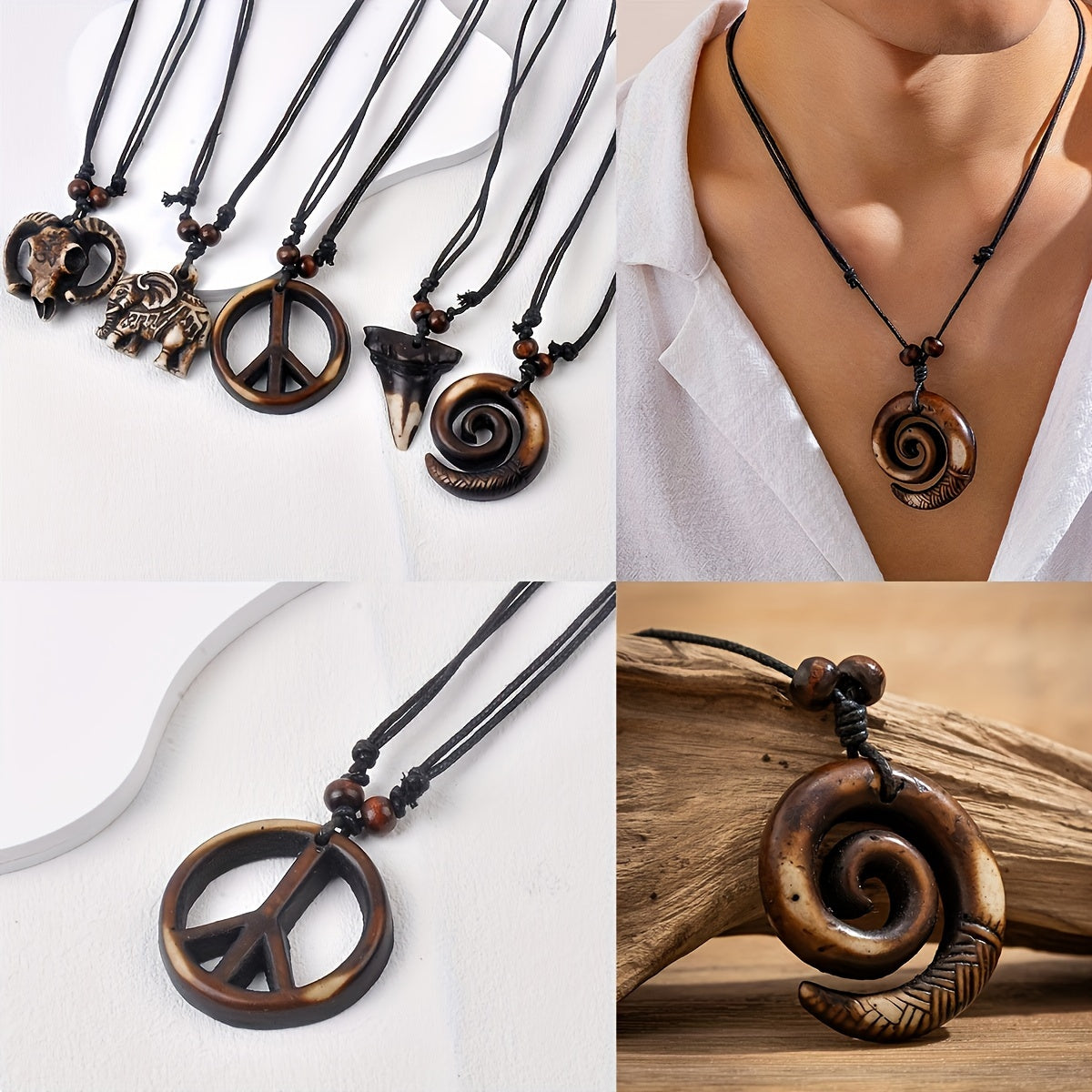 Boho Men's Peace Elephant Pendant Necklace Waxed Cord