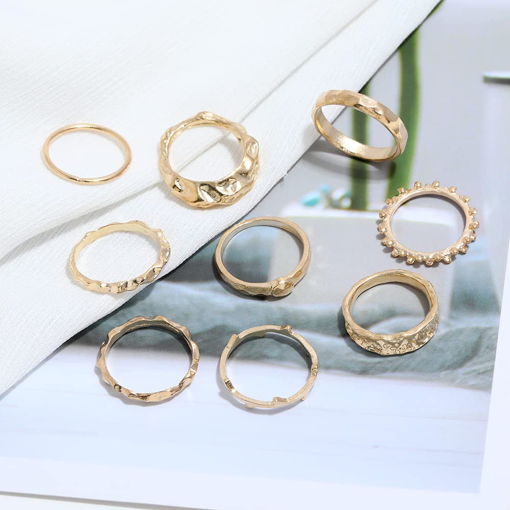 Add a touch of bohemian style to your look with this set of 9 metal midi rings. Mix and match to create your own unique combination.