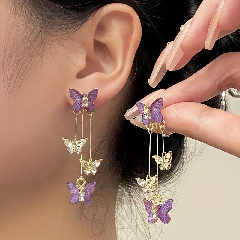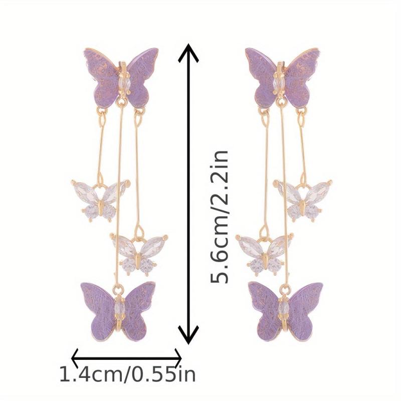 Boho Rhinestone Butterfly Tassel Earrings Zirconia Dangle December Birthsto