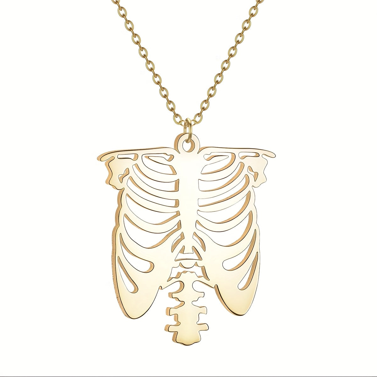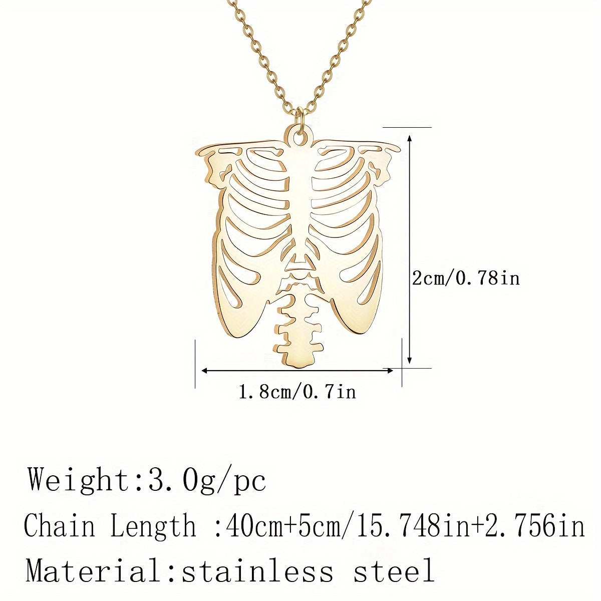 Get into the Halloween spirit with this Boho Skeleton Ribcage Choker Necklace. Made of durable stainless steel, this necklace is a perfect spooky accessory or gift for the holiday season.