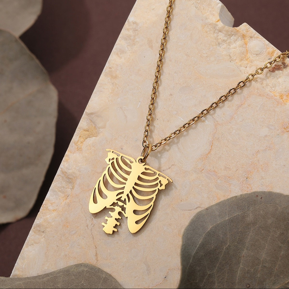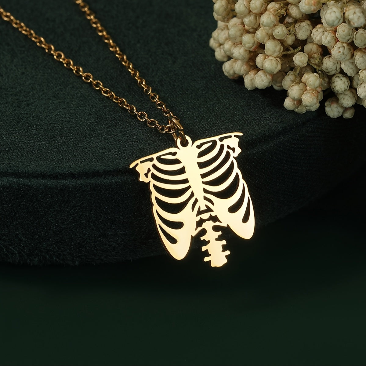 Boho Skeleton Ribcage Choker Necklace Stainless Steel