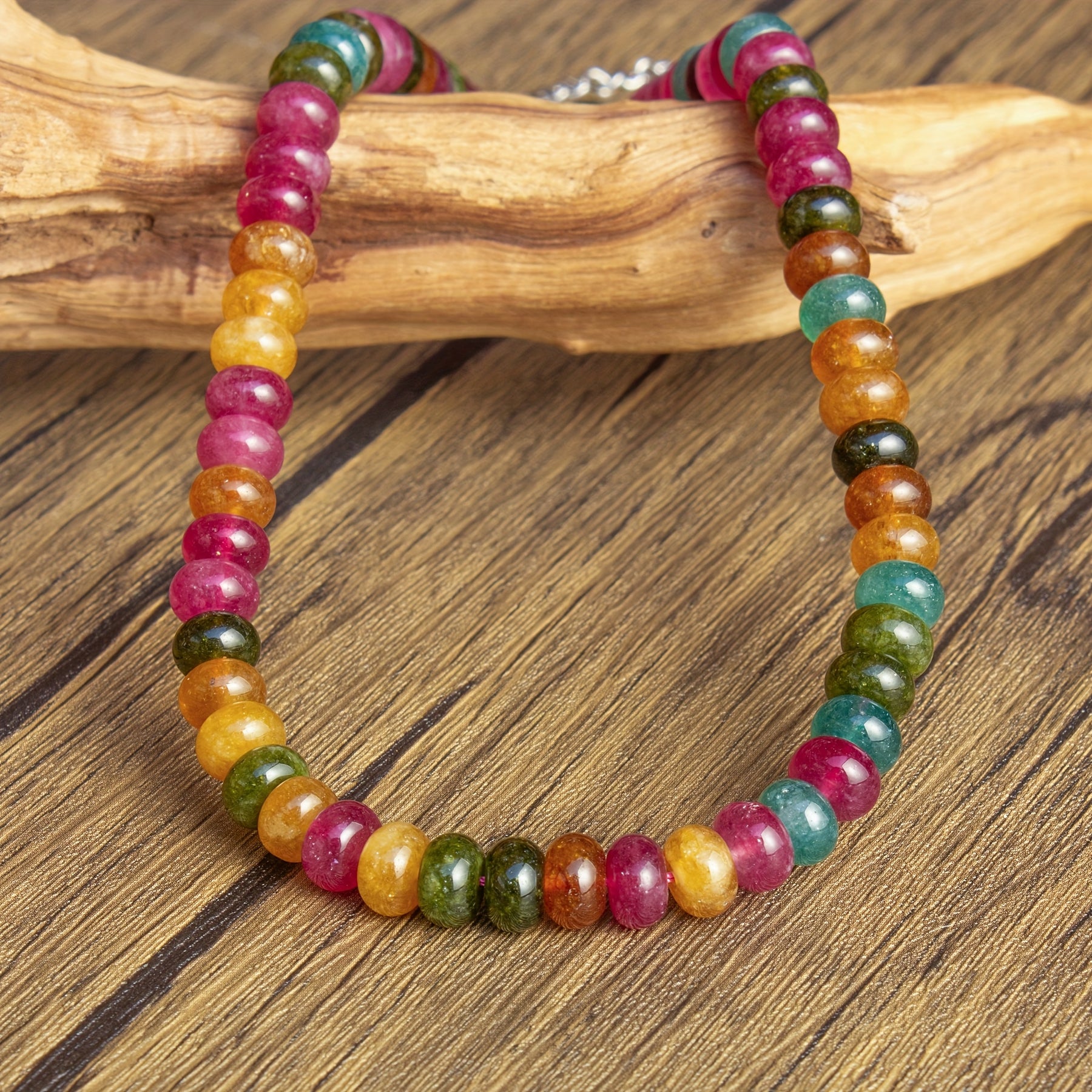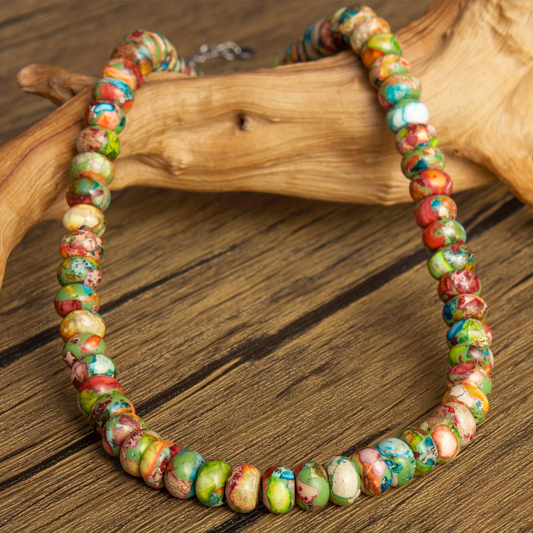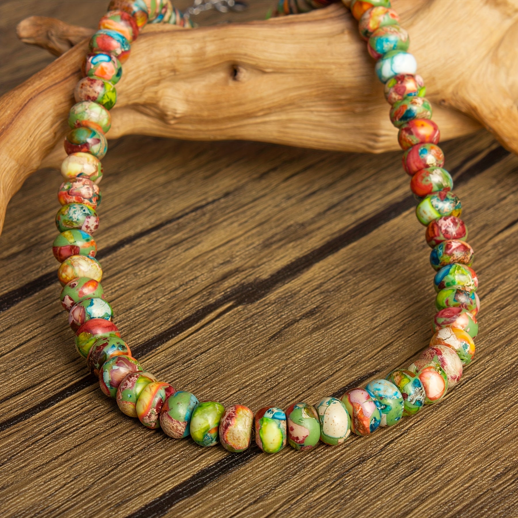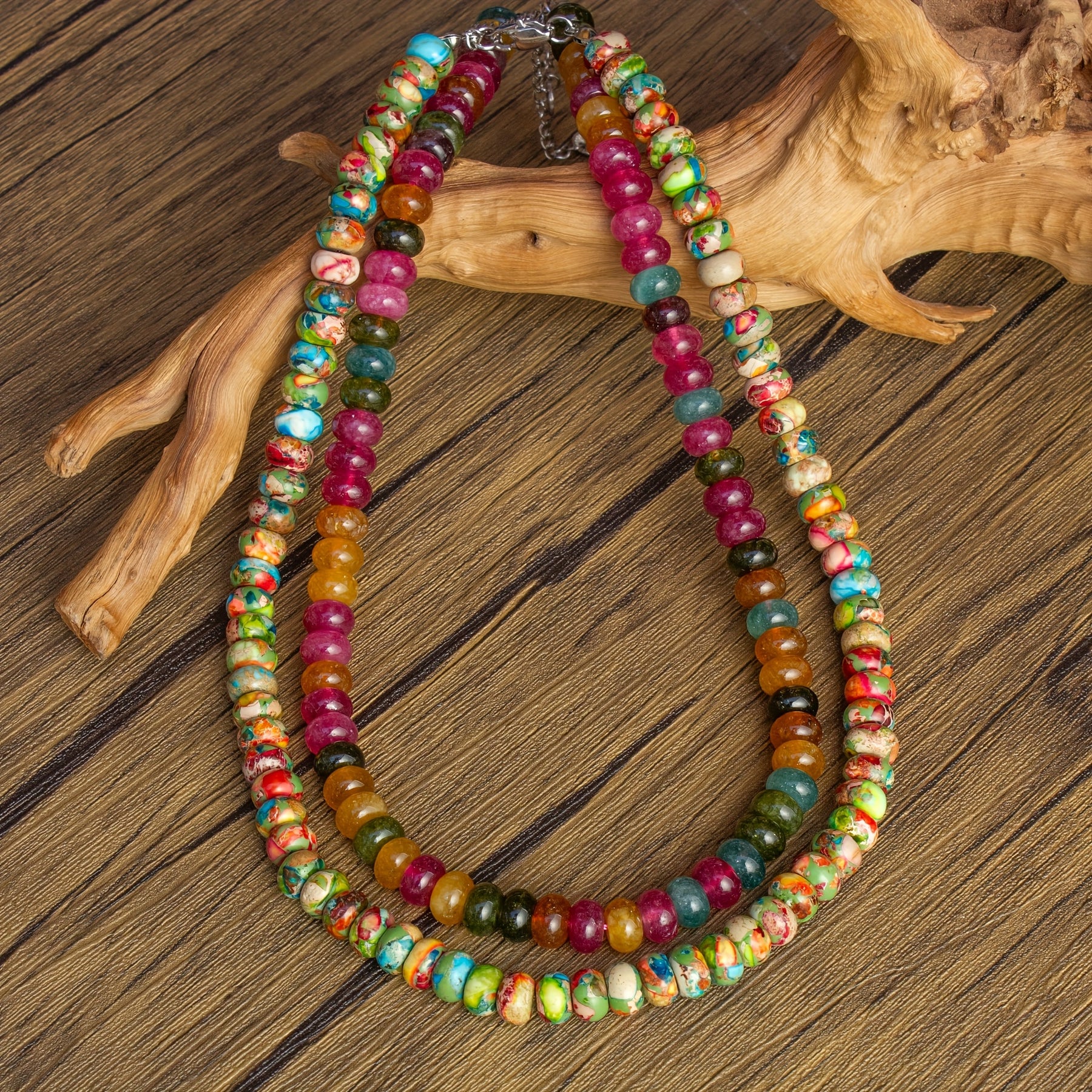 This boho natural stone beaded necklace is a perfect gift option, featuring colorful beads with good luck blessings and dopamine effects.