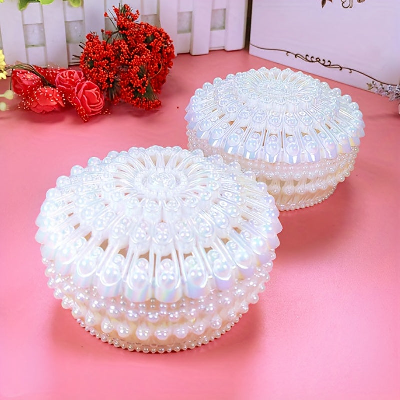 This stunning boho style jewelry storage box is the perfect gift for Christmas, weddings, or any special occasion. Featuring faux pearl accents, it adds a touch of elegance to any space.