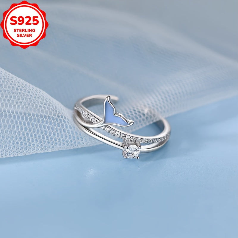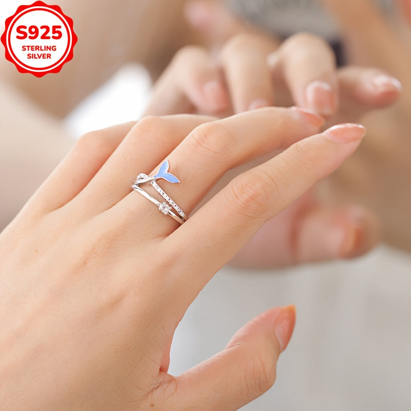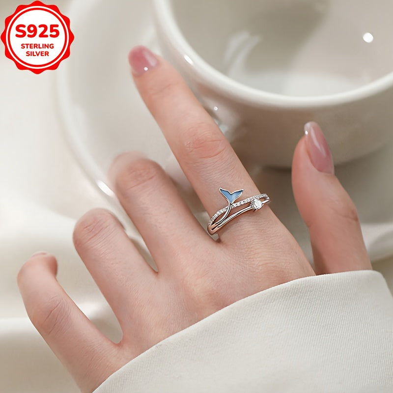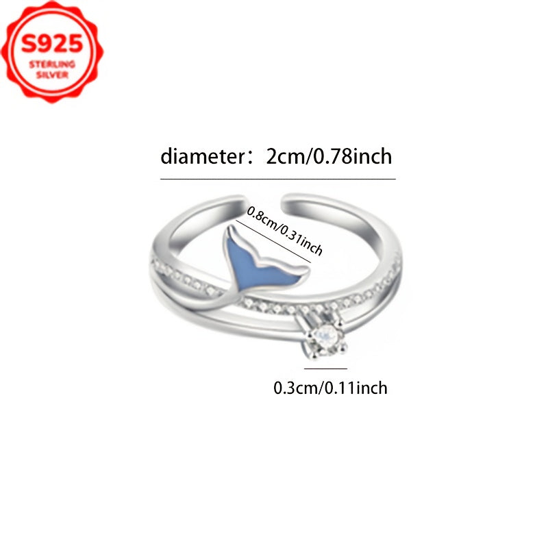 Elevate your style with this stunning S925 sterling silver adjustable ring featuring a fish tail design adorned with sparkling cubic zirconia. Hypoallergenic and anti-tarnish, perfect for daily wear and Valentine's Day.