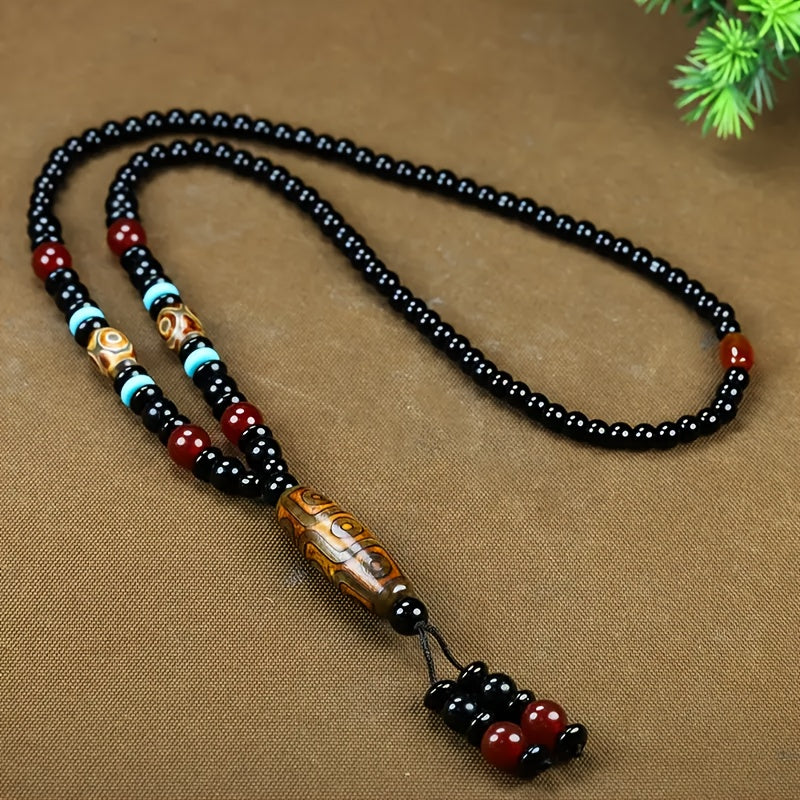 Boho Style Himalayan Crystal Bead Necklace for Men Ethnic Spiritual Amulet