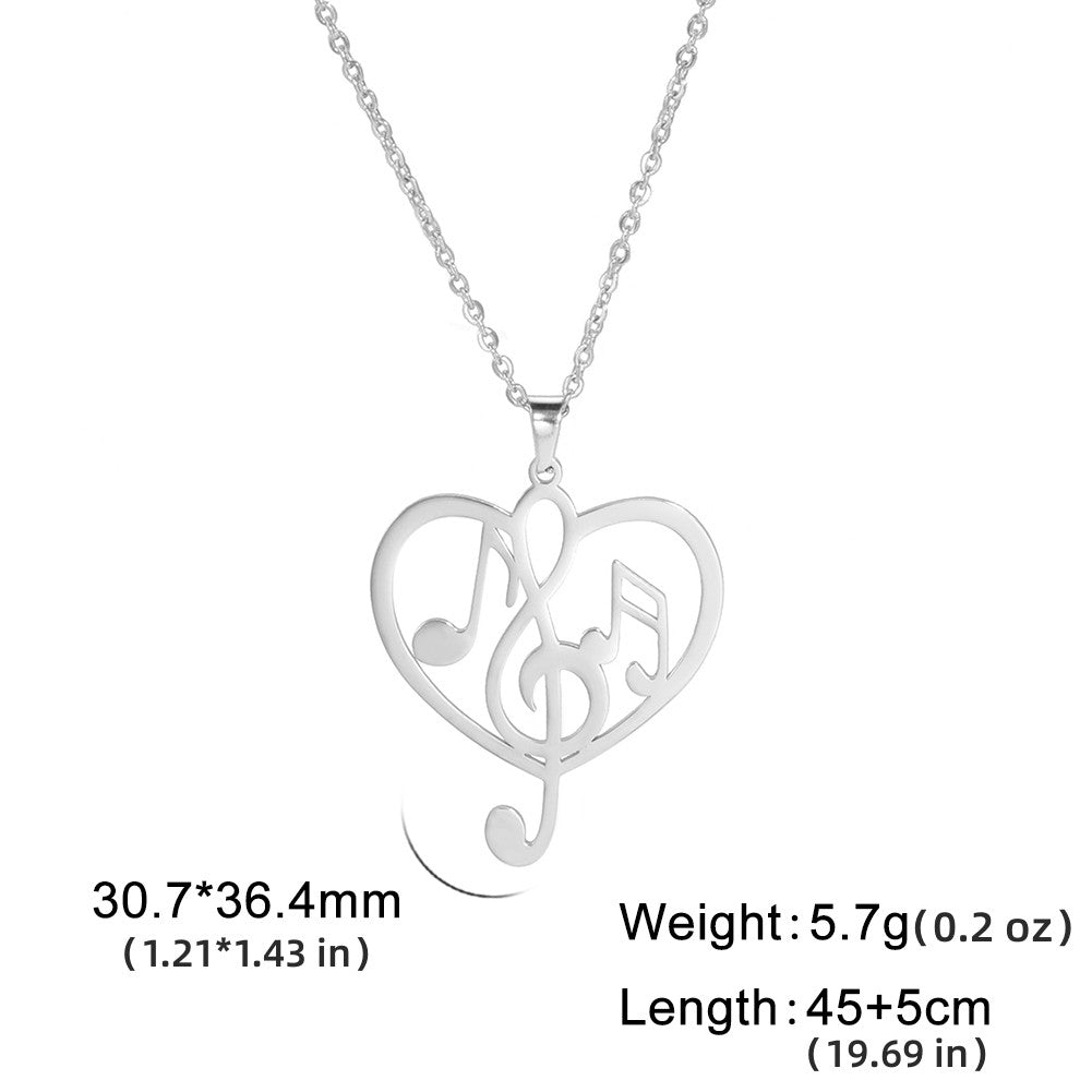 Boho Style Music Note Heart Pendant Necklace Unisex Minimalist Jewelry