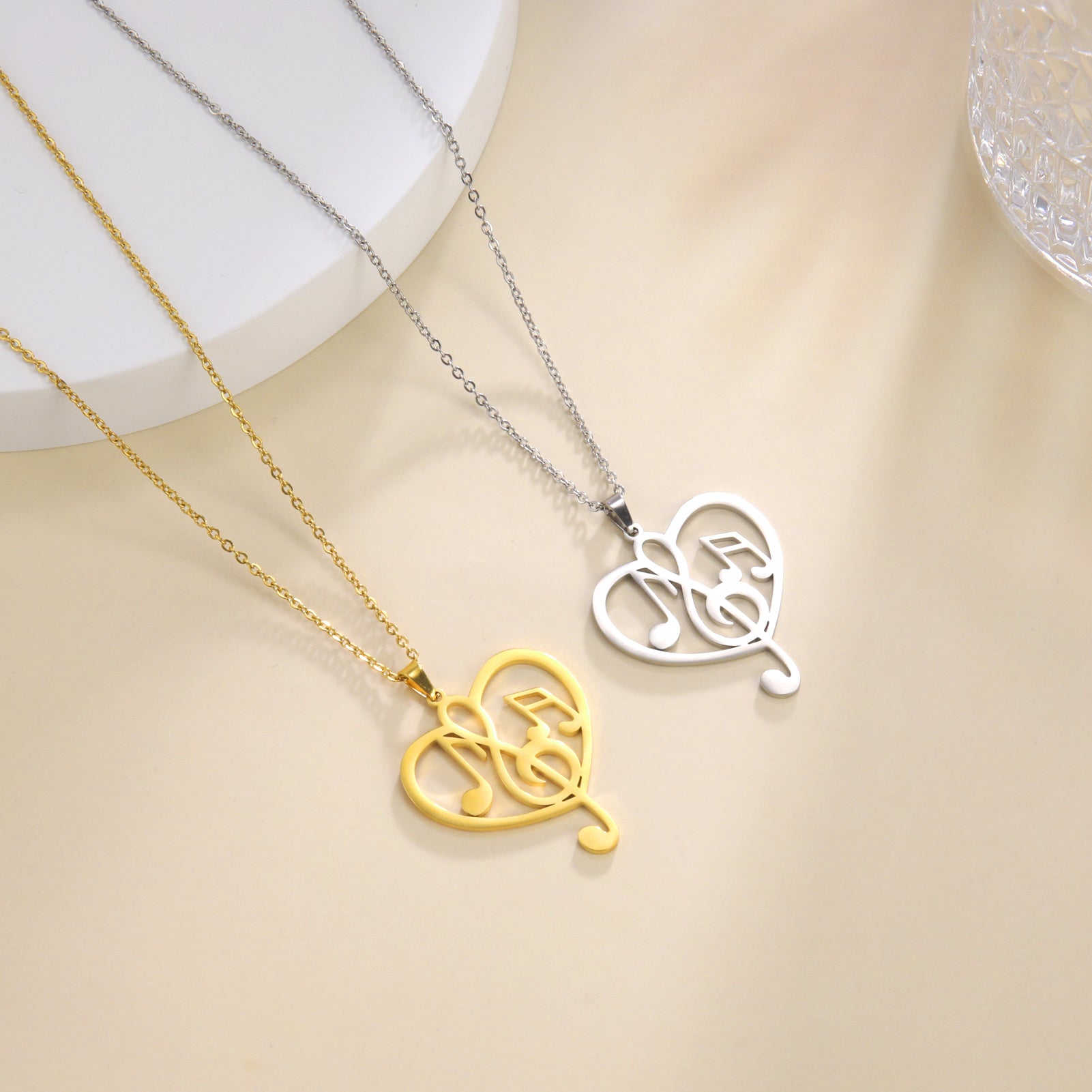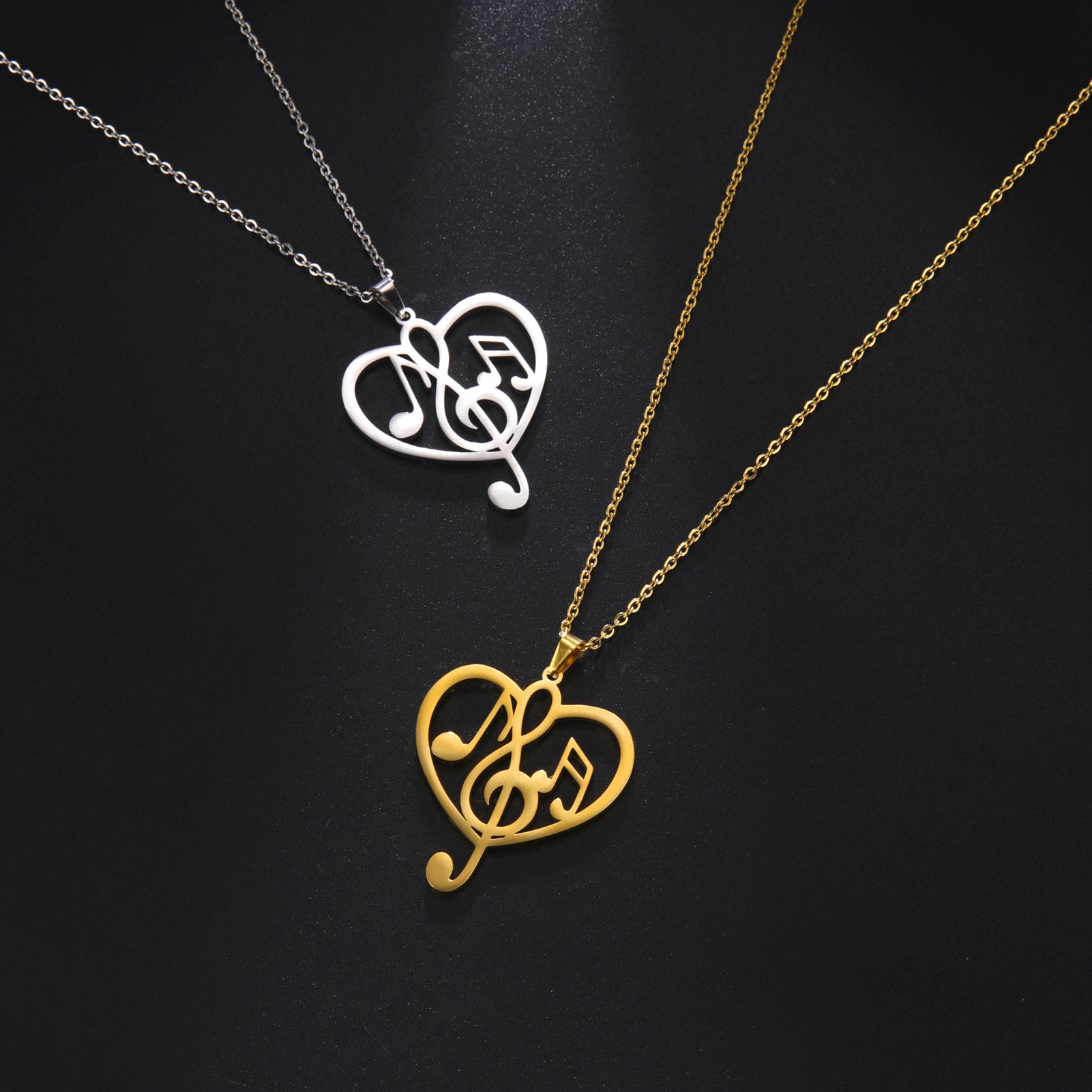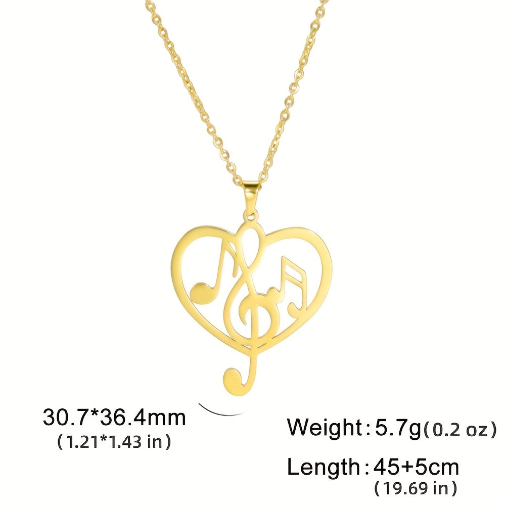 This KKJOY pendant necklace features a music note heart design, made of 304 stainless steel with 18K golden plating. Perfect as a Valentine's gift.