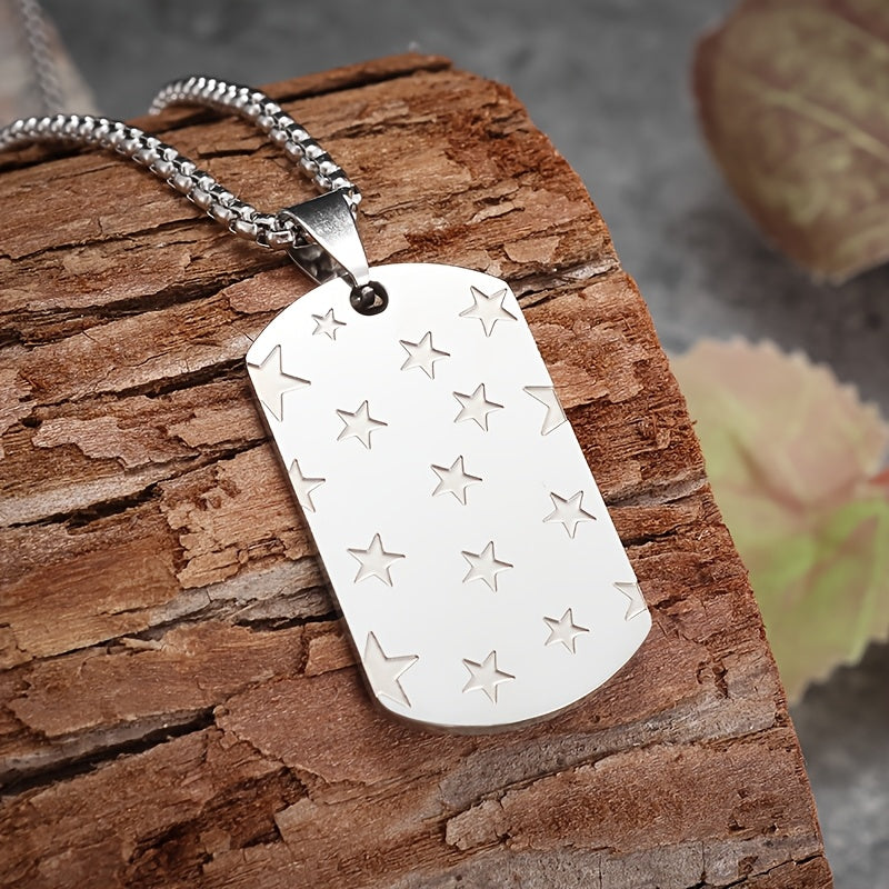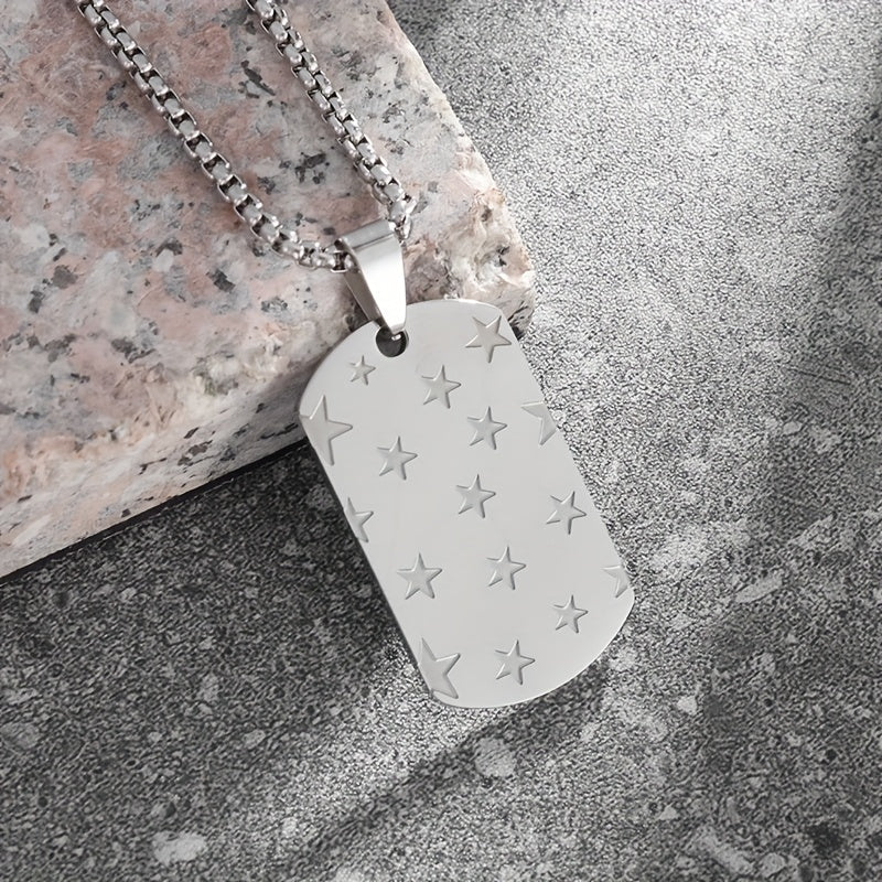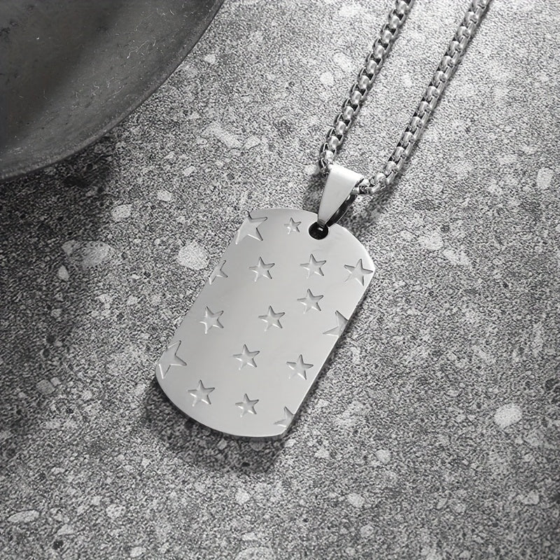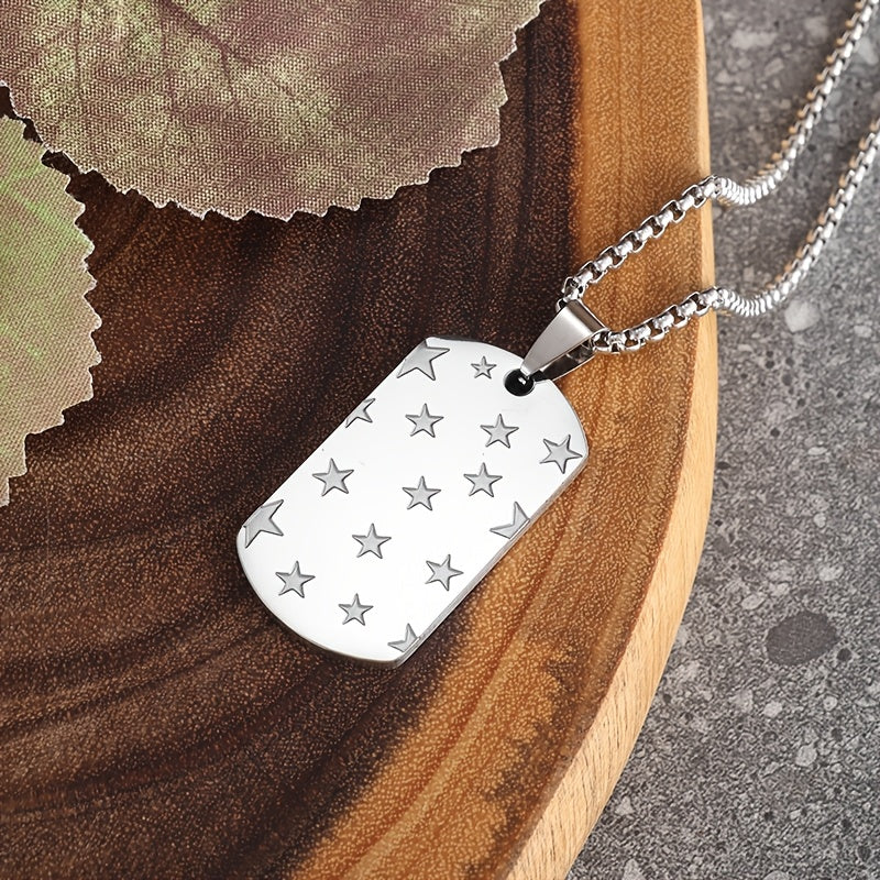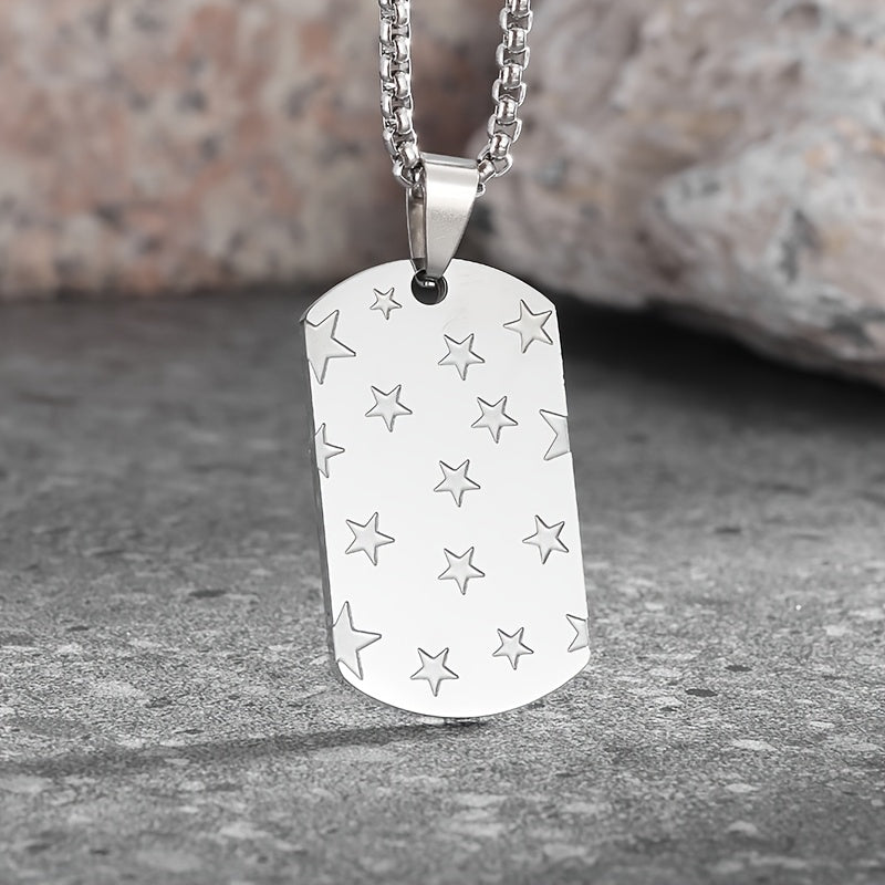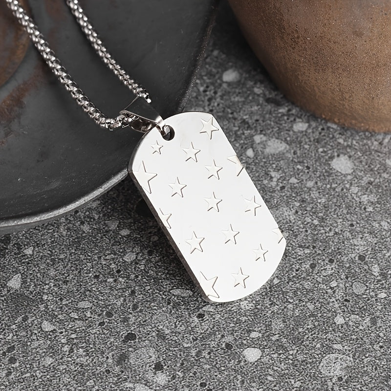 Boho Style Stainless Steel Star Dog Tag Pendant Necklace