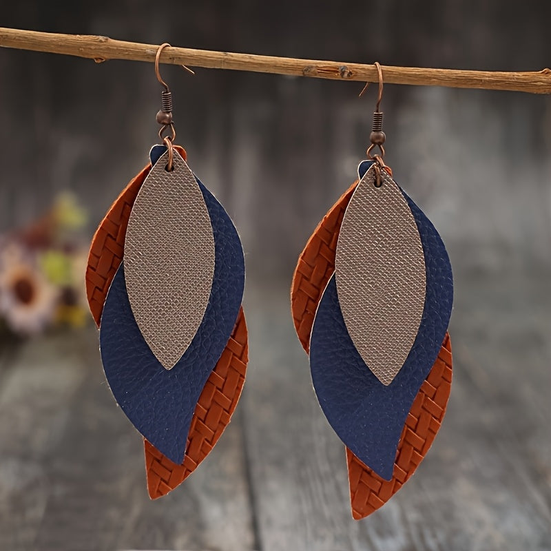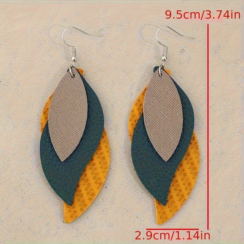 Add a touch of bohemian style to your outfit with these vintage-inspired S-shaped leaf dangle earrings. Made of faux leather and iron, these earrings are a unique accessory for women.
