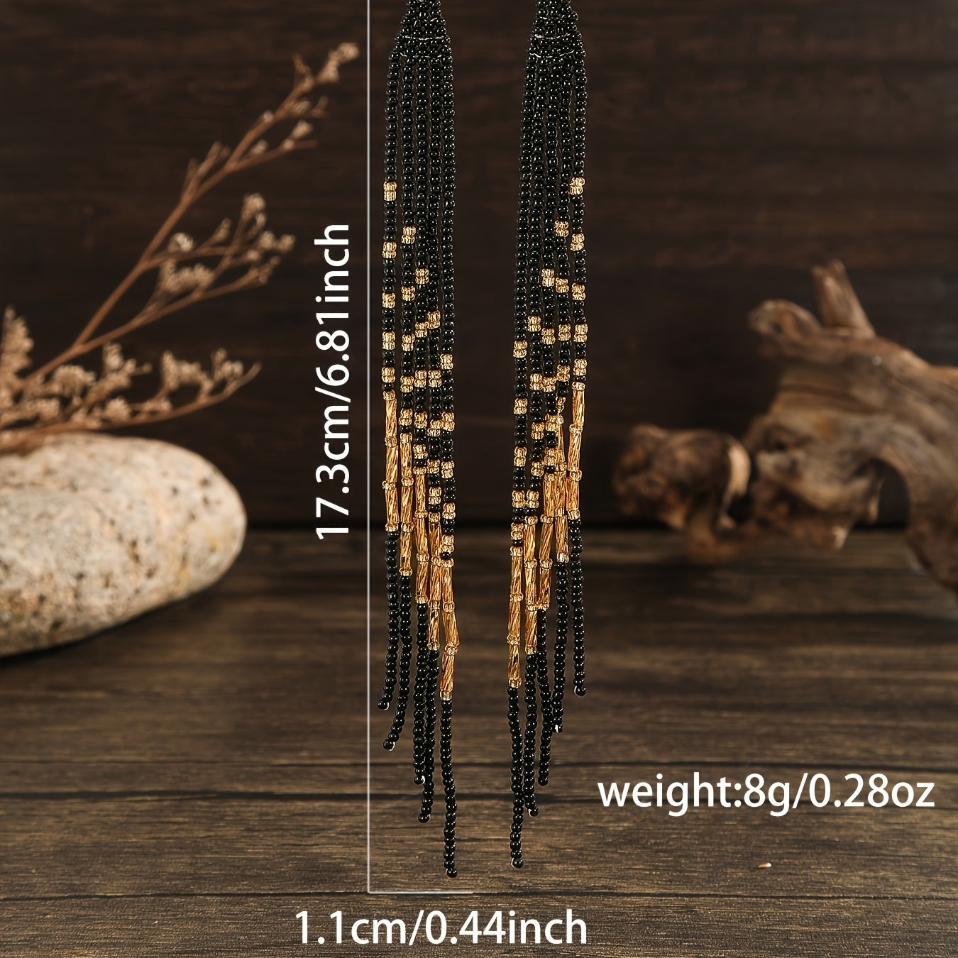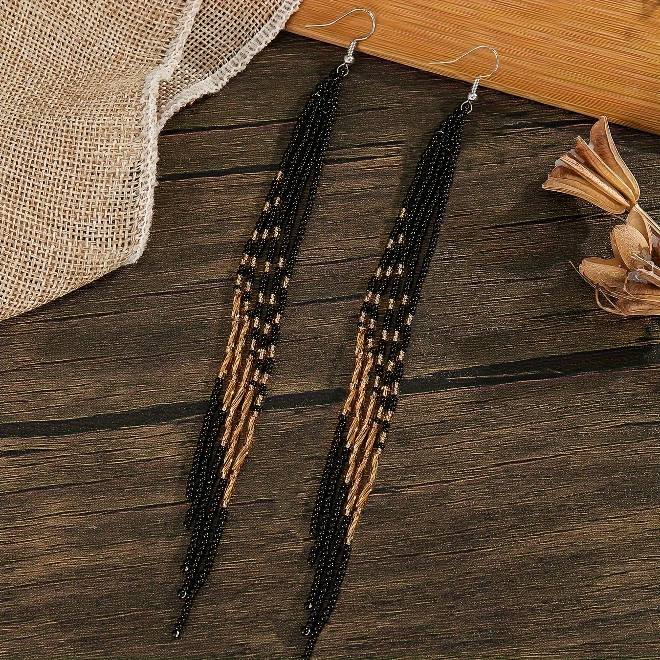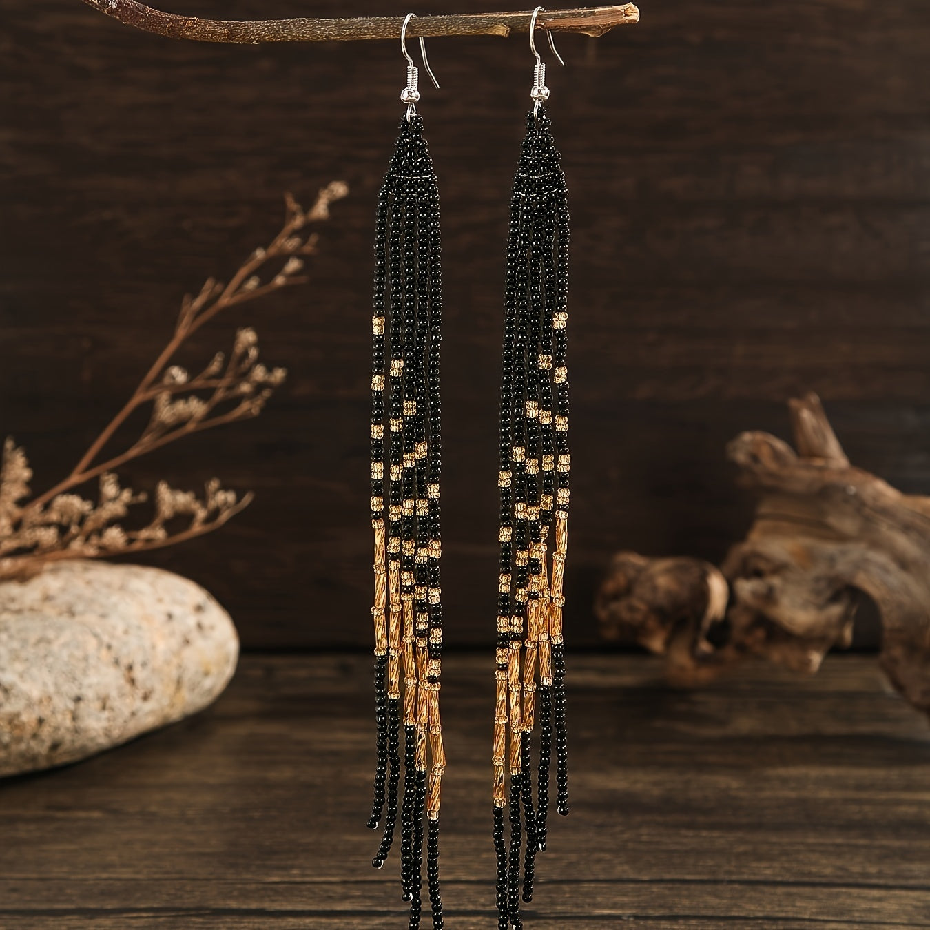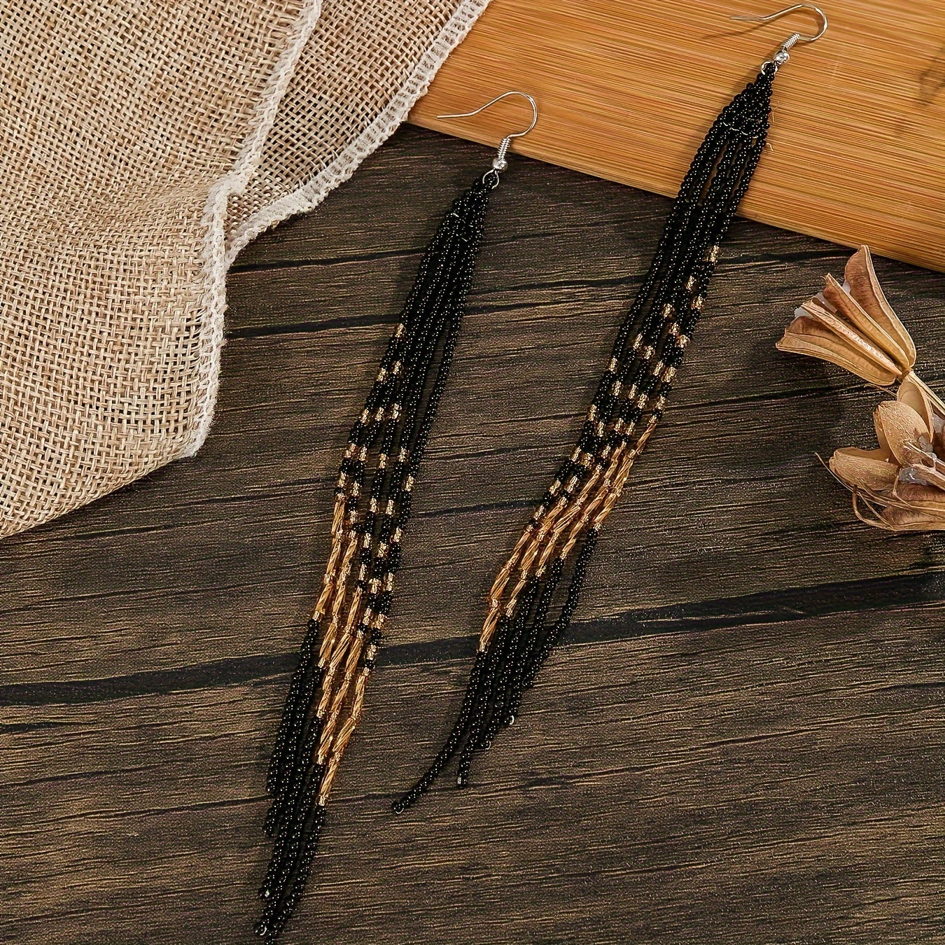 Boho Vintage Tassel Earrings Glass Bead Fringe Dangles