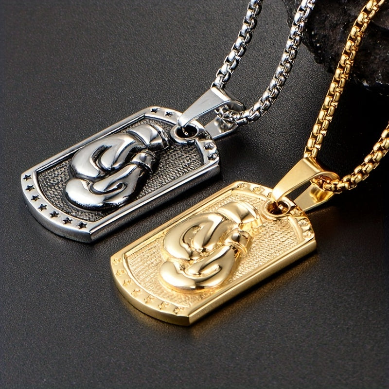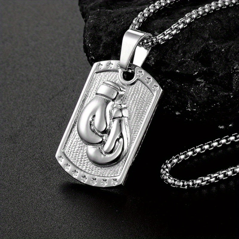 Show your love for boxing with this stylish military tag pendant necklace featuring boxing gloves design. Great for sports enthusiasts and athletes.