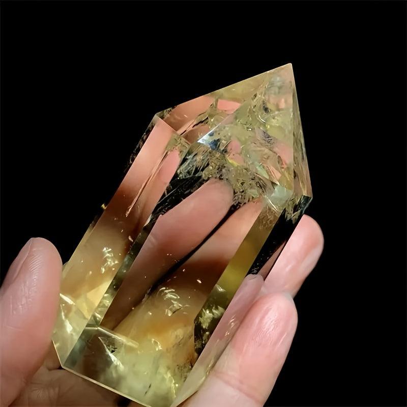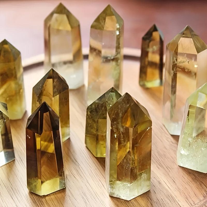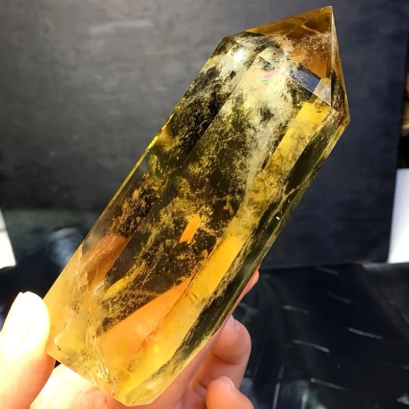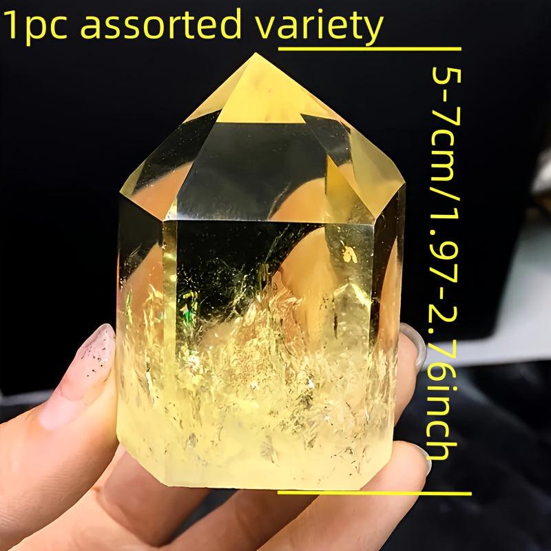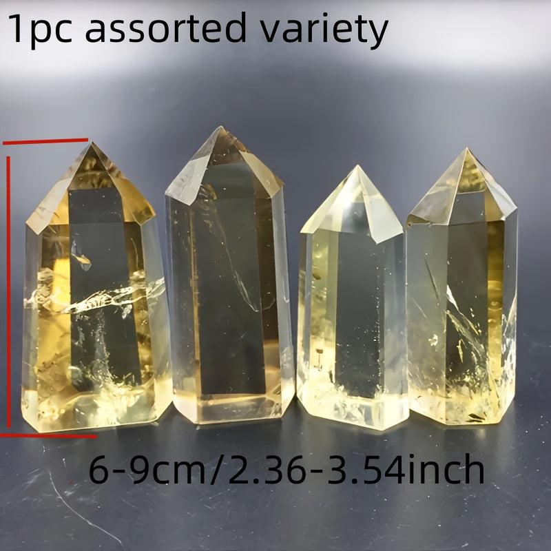 Add a touch of boho style to your decor with this stunning Brazilian citrine tower featuring tassel embellishments and rock crystal obelisk design.