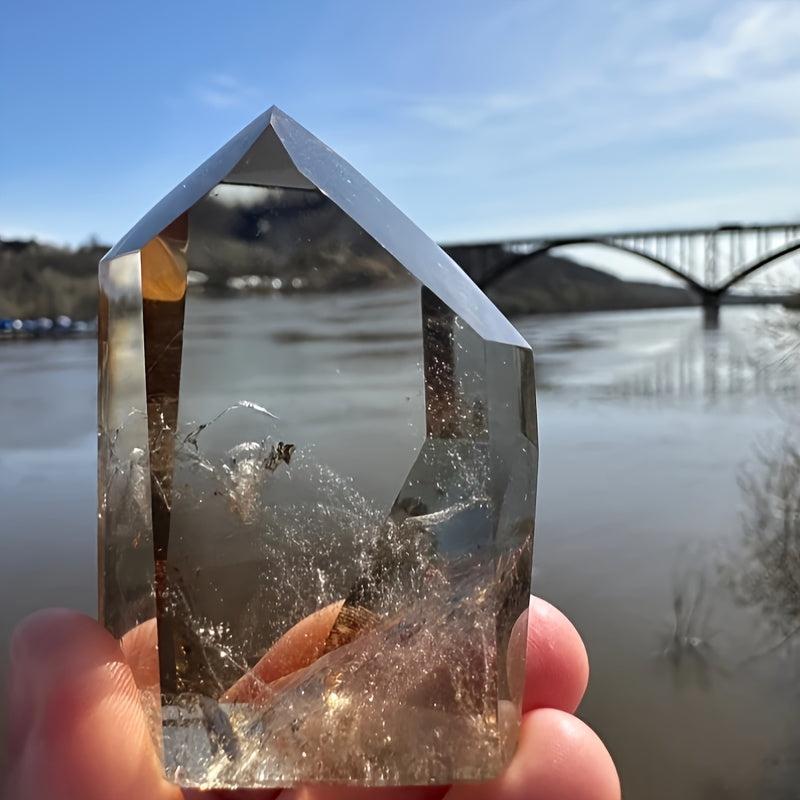 Brazilian Citrine Tower Tassel Embellished Rock Crystal Obelisk