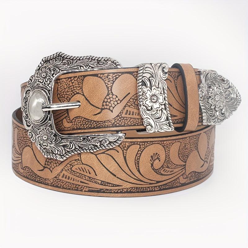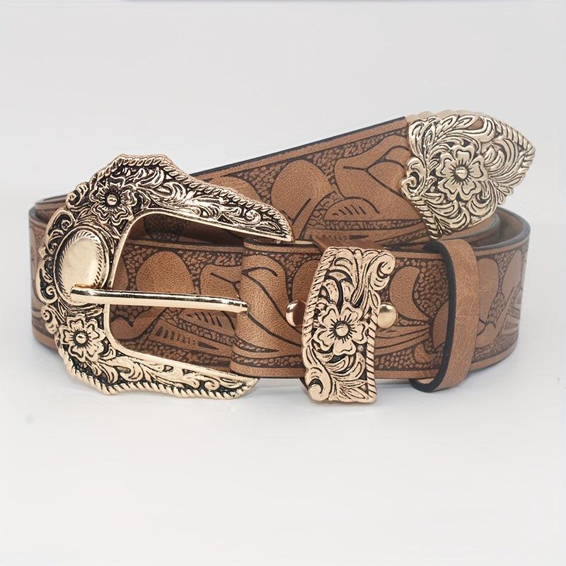 Elevate your style with this vintage brown floral embossed belt featuring an antique bronze toned buckle. Perfect accessory for jeans, dresses, and shirts. Ideal gift for women and girls.