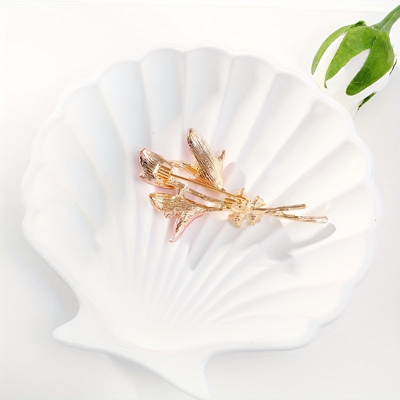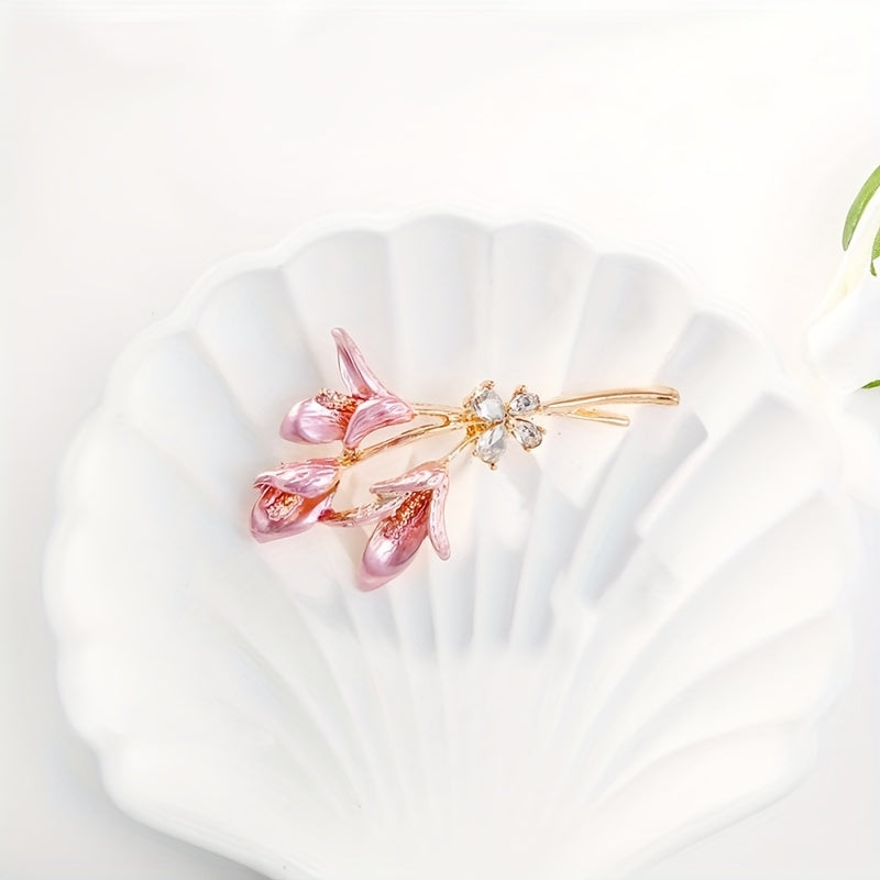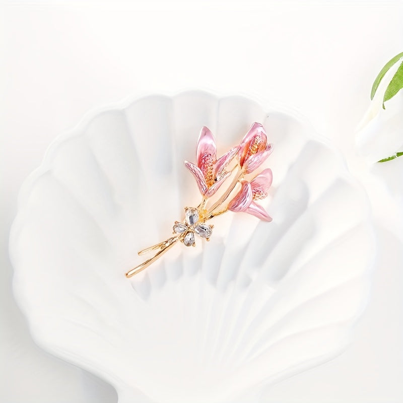Elegant butterfly brooch with golden lily design, perfect for girls and women to add a vintage touch to their outfits.