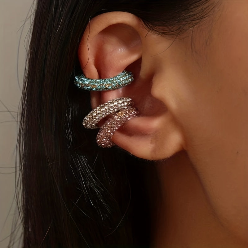 This ear cuff features a C shape design with rhinestone inlay. Perfect for daily casual wear and adding a touch of boho style.