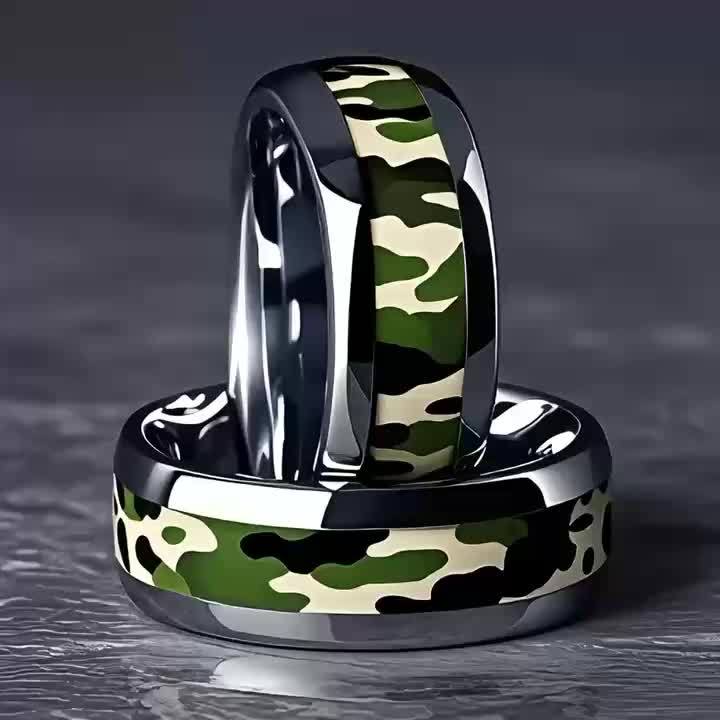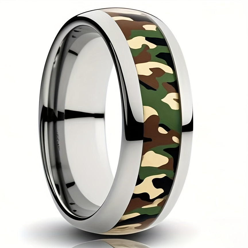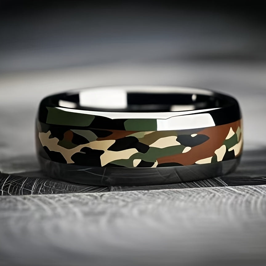 This unique camouflage pattern ring is made of 304 stainless steel, perfect for outdoor enthusiasts. Suitable for weddings, casual attire, and as a special gift for men.