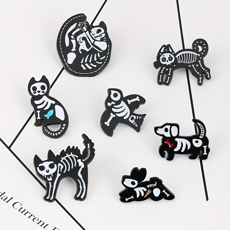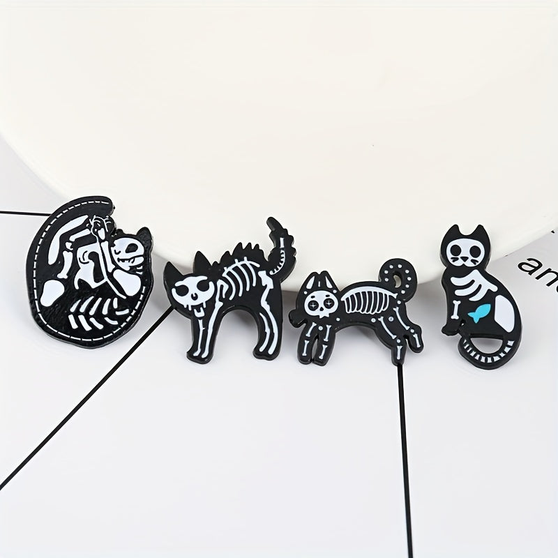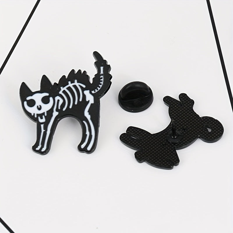 Capture attention with this creative cartoon skull cat brooch, a punk-style accessory from the dark series. It's a perfect Halloween gift for someone who loves unique and edgy accessories.