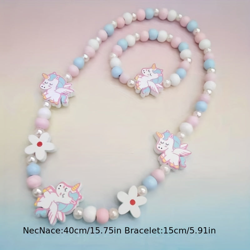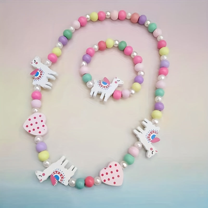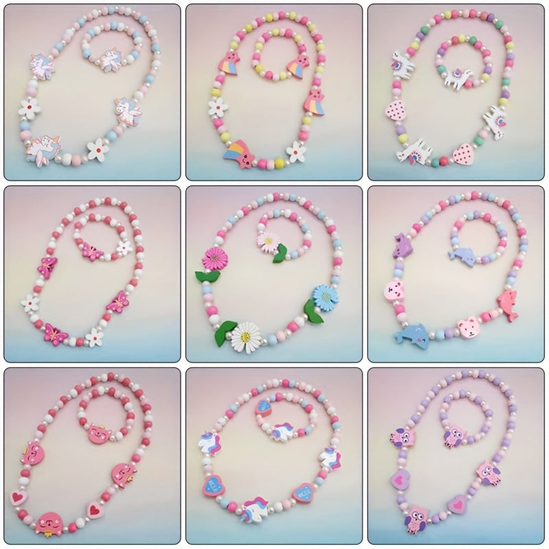 Cartoon Wooden Chain DIY Bracelet Necklace Set, 10 Styles