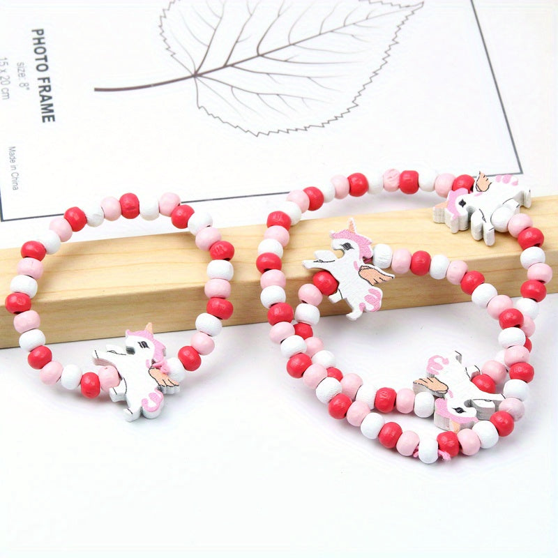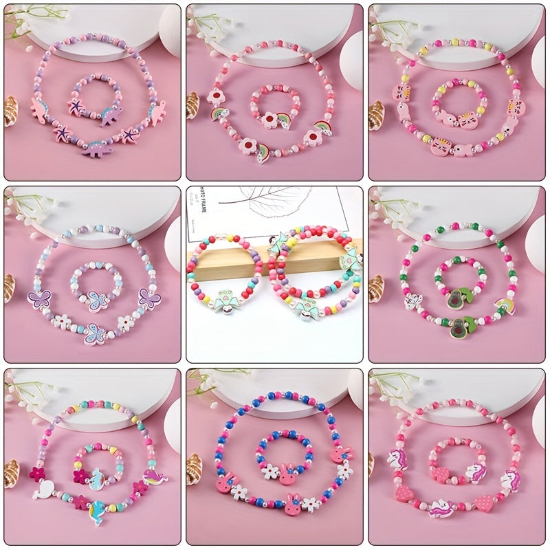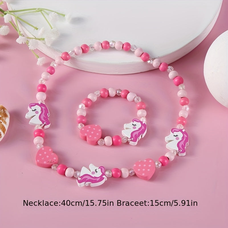 Let your child's creativity shine with this 2-piece set of wooden DIY bracelet and necklace. Perfect for crafting fun and imaginative jewelry pieces.