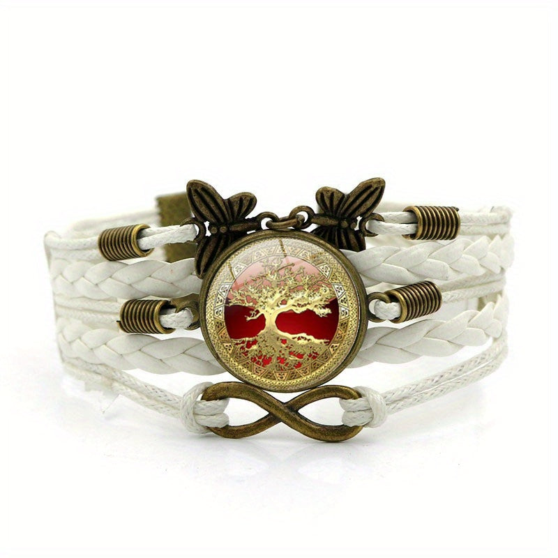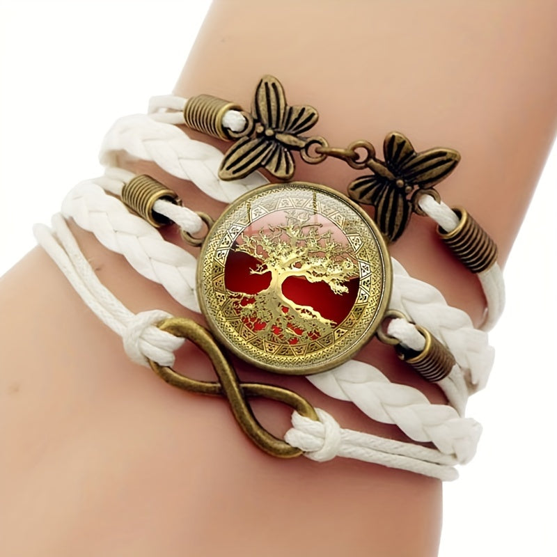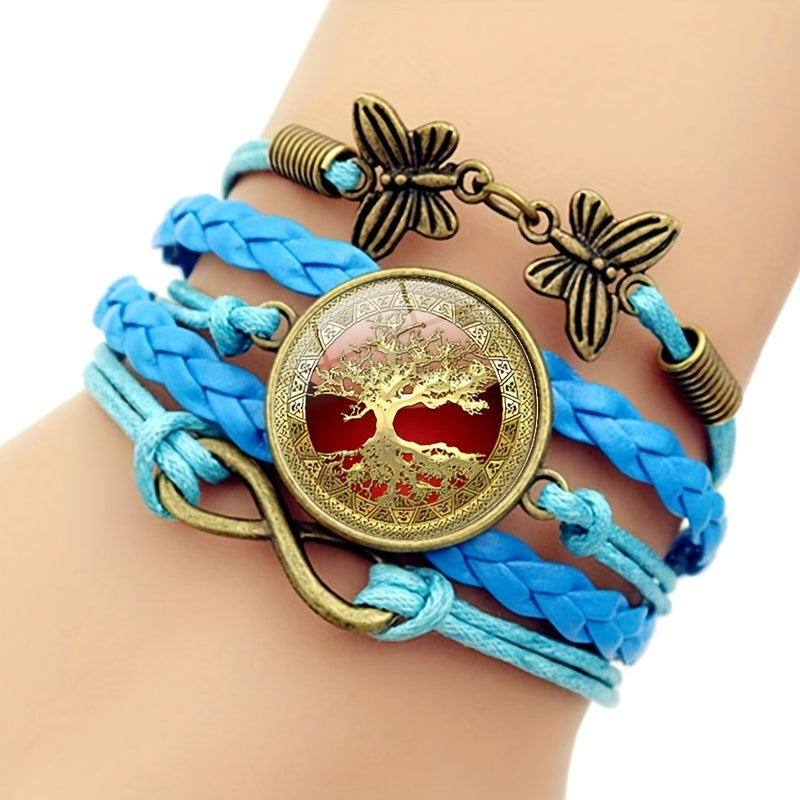 Embrace the beauty of this Celtic Tree of Life gemstone bracelet that features a vintage butterfly and infinity symbol combination. A timeless accessory that exudes elegance.
