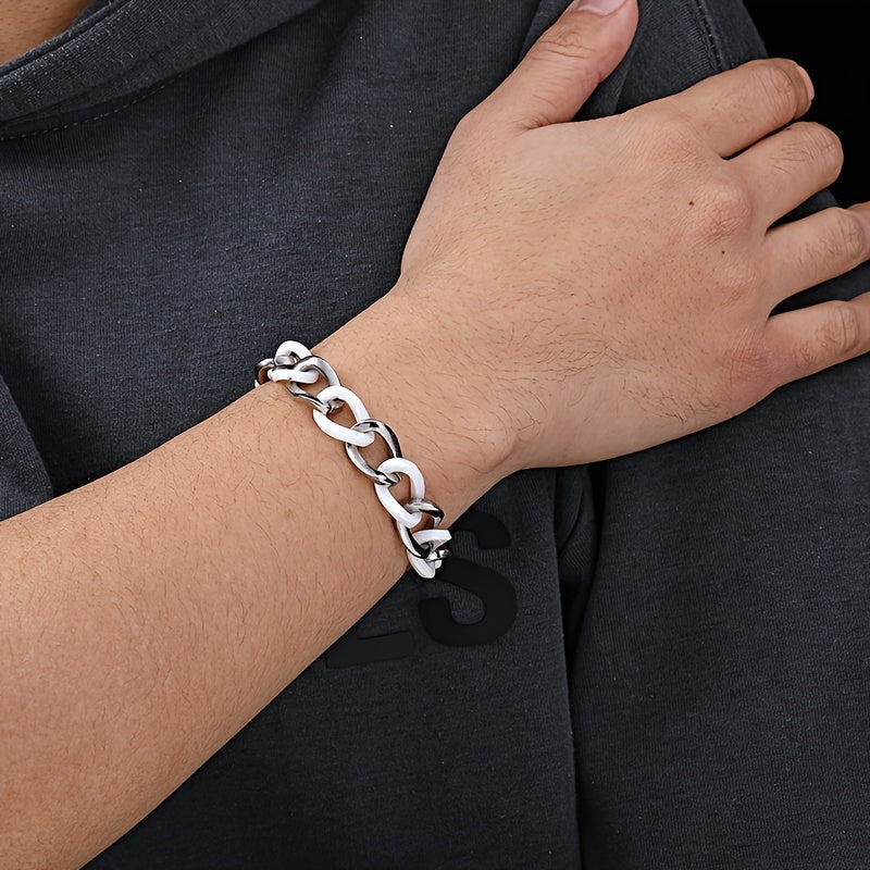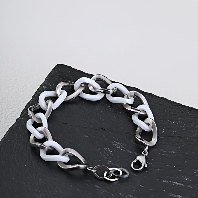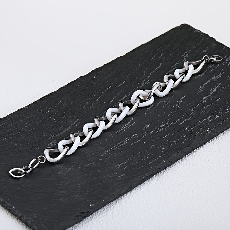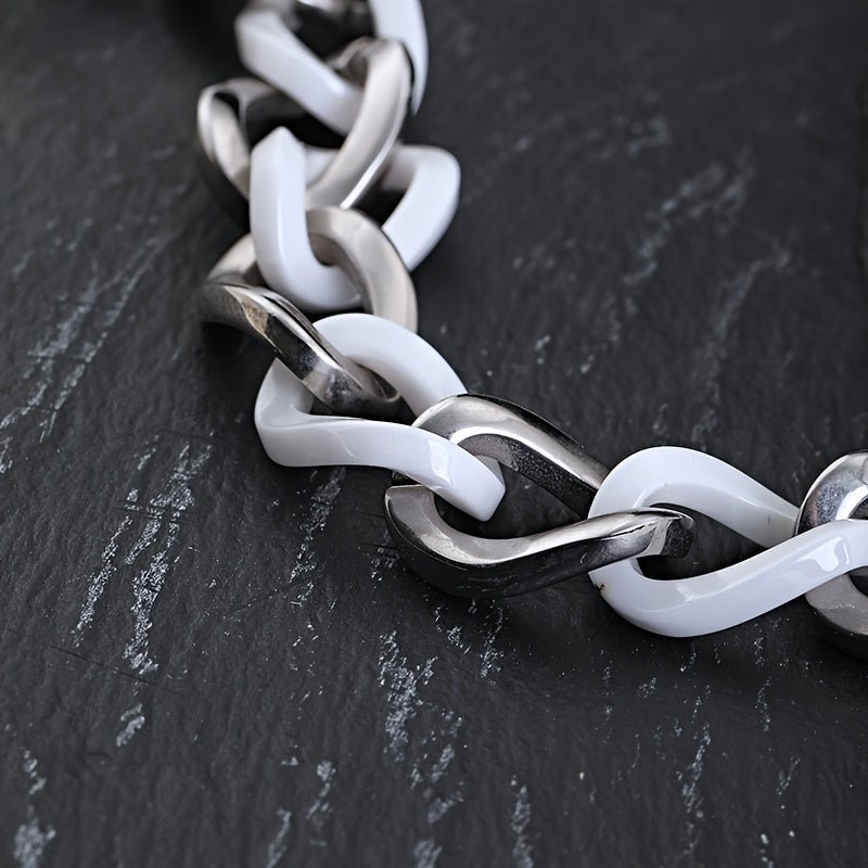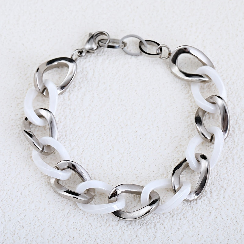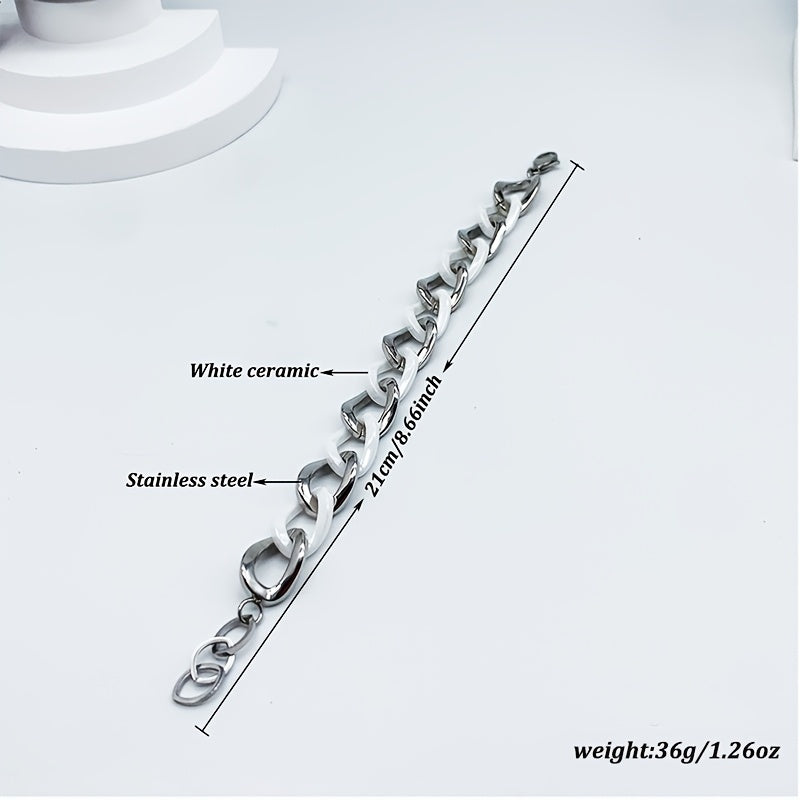 Ceramic Cuban Link Bracelet Stainless Steel Zirconia Unisex Jewelry