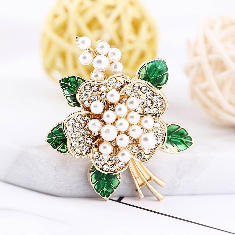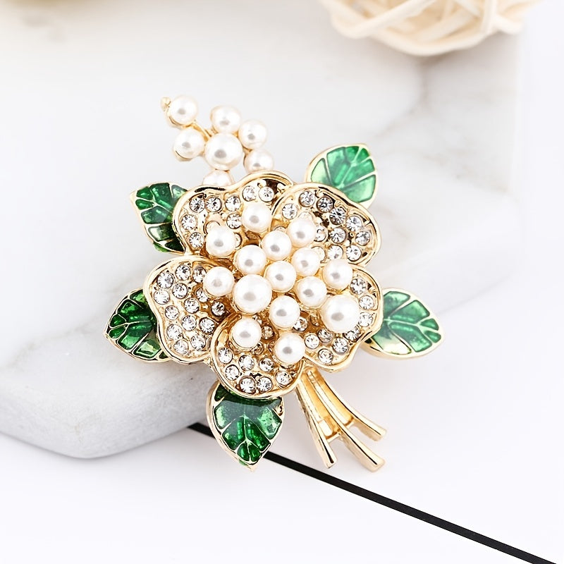 Chinese Style Rhinestone Flower Faux Pearl Brooch Pins Corsage Scarf Clips