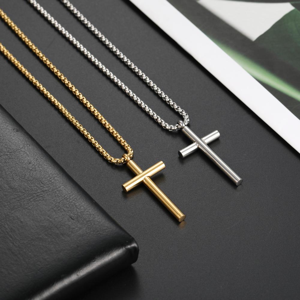 Christian Cross Pendant Necklace Stainless Steel Choker Chain