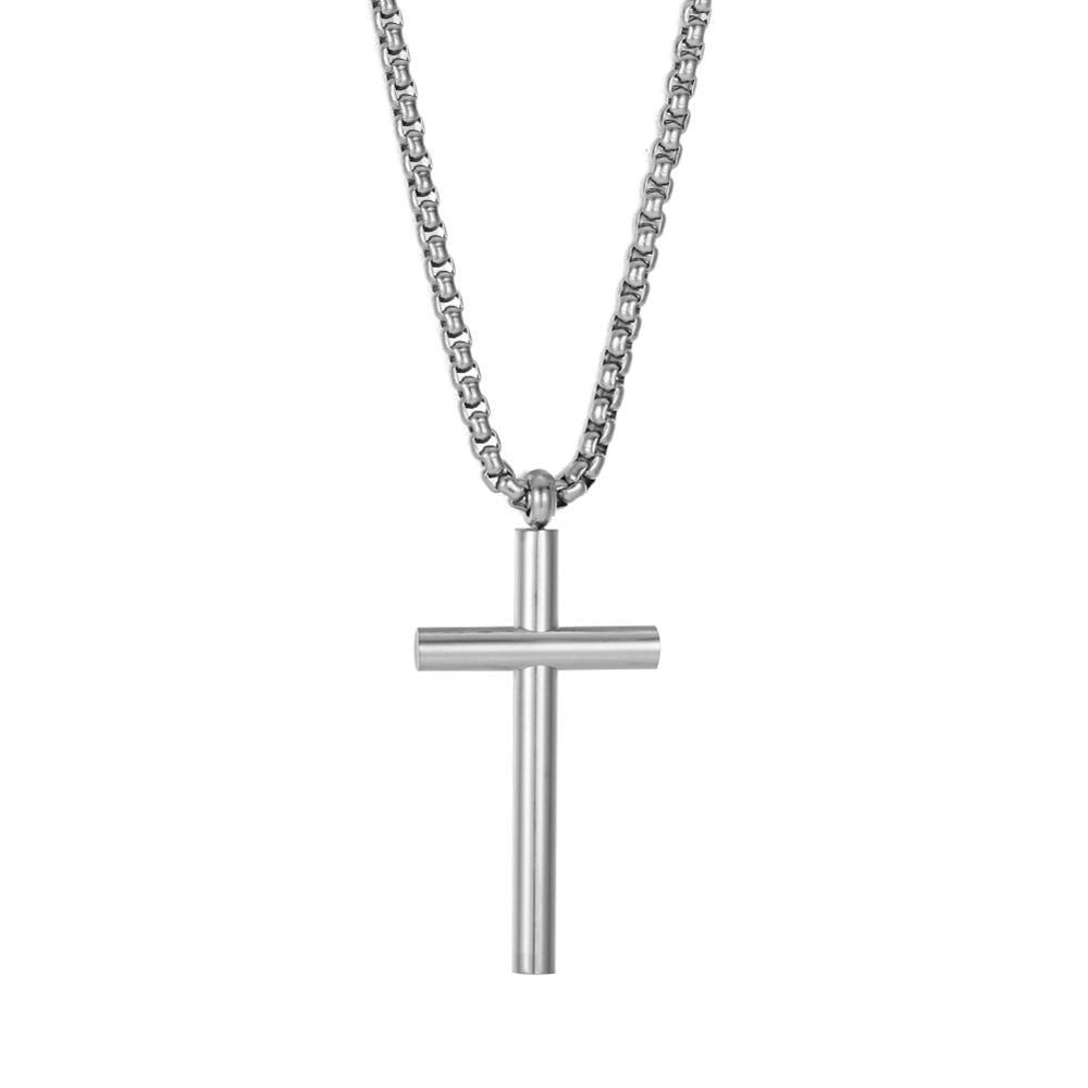 This stainless steel choker chain necklace features a Christian cross pendant. It is a stylish and meaningful amulet.