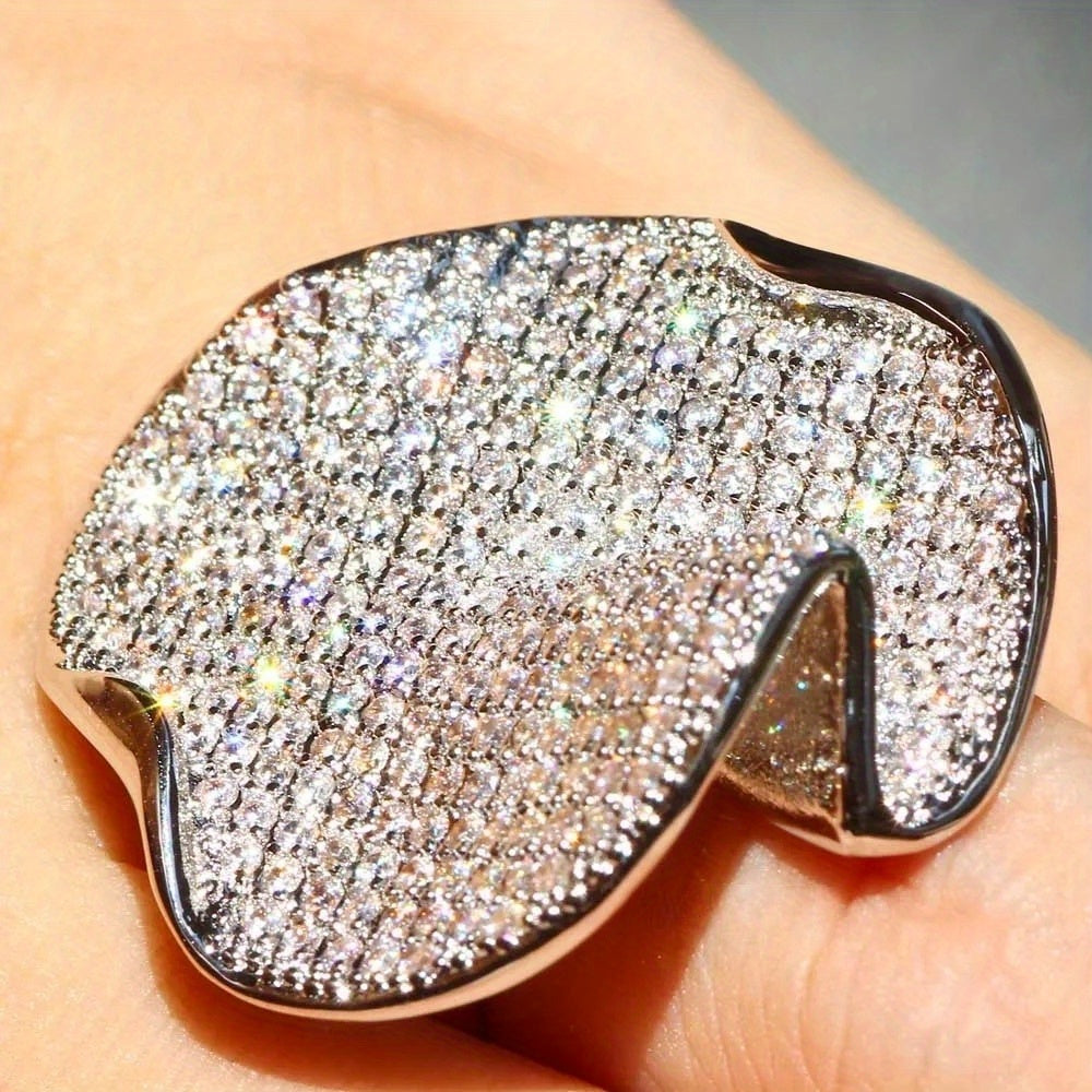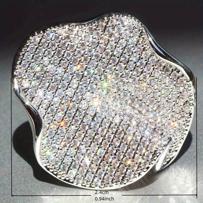 Make a bold statement with this funky and unique cocktail ring. The irregular circle design with inlaid zirconia stones is perfect for parties, music festivals, and hippie vibes.