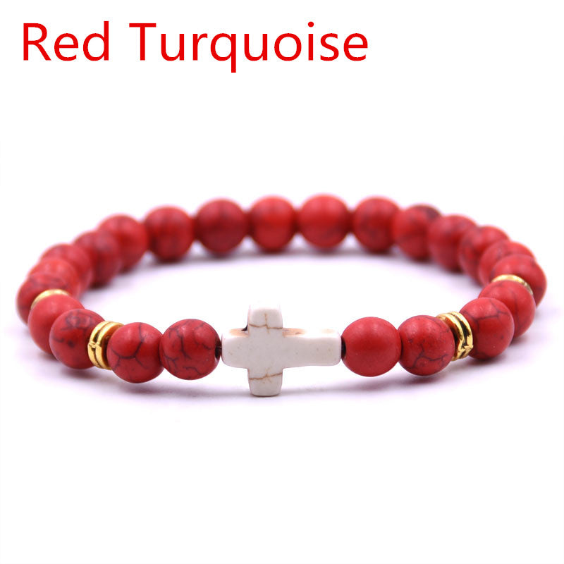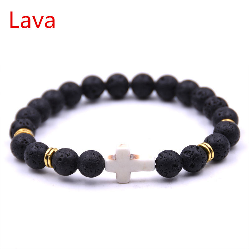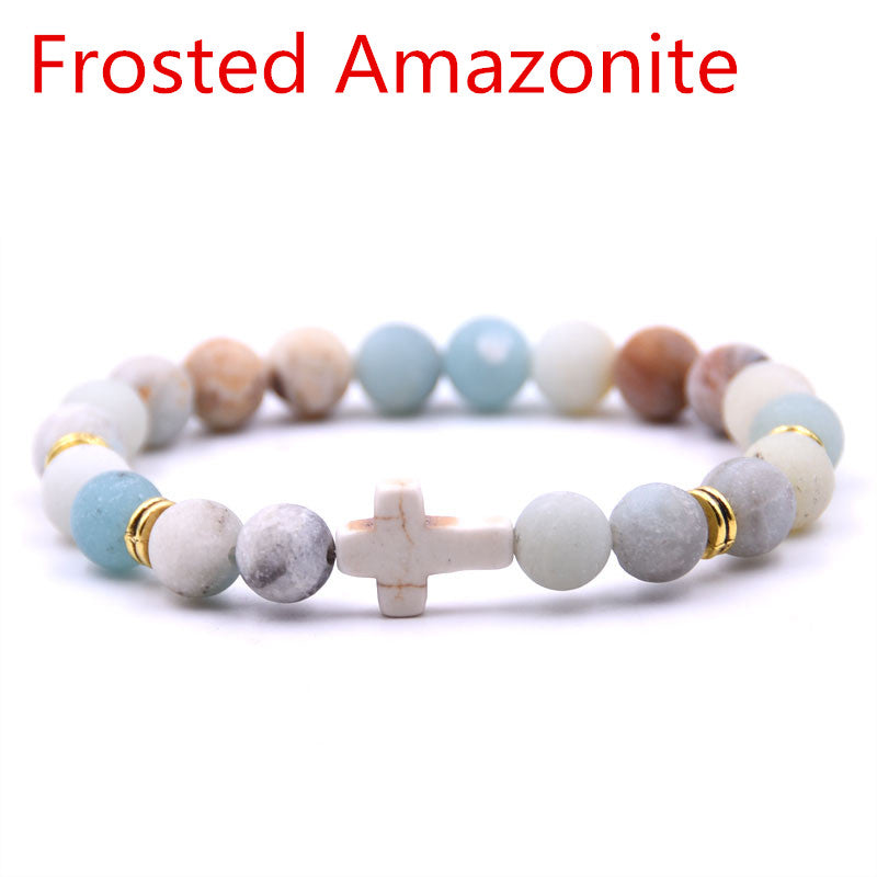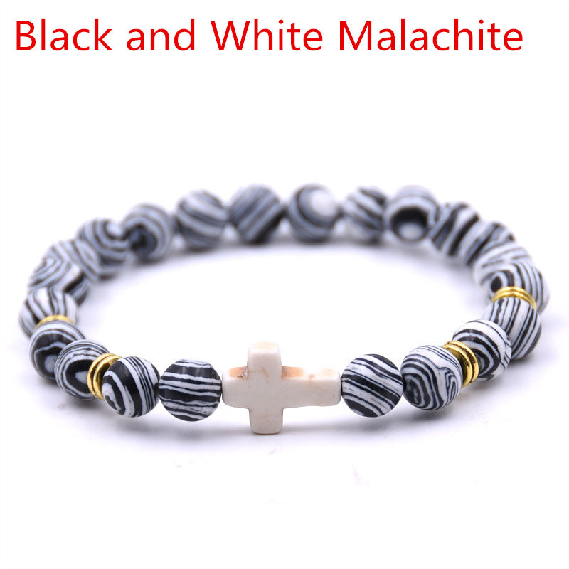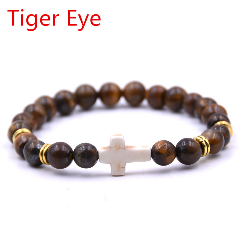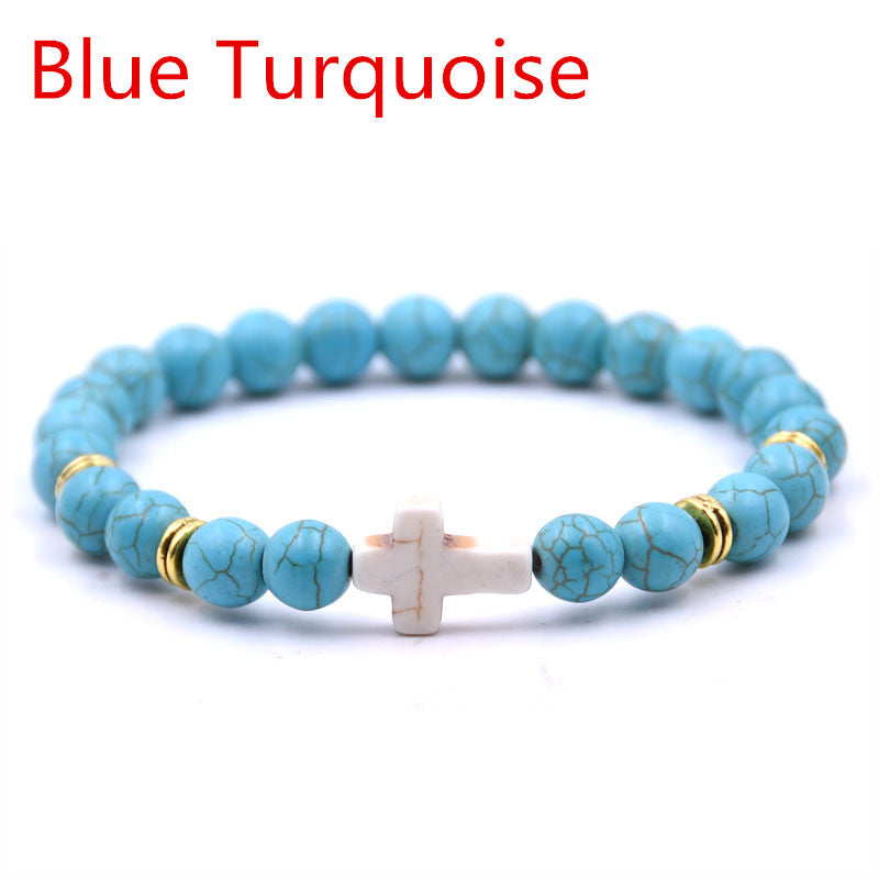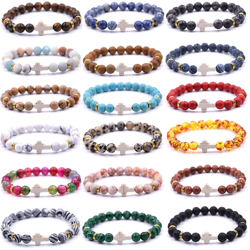 Classic Unisex 18-Color Natural Stone Cross Men Bracelet DIY