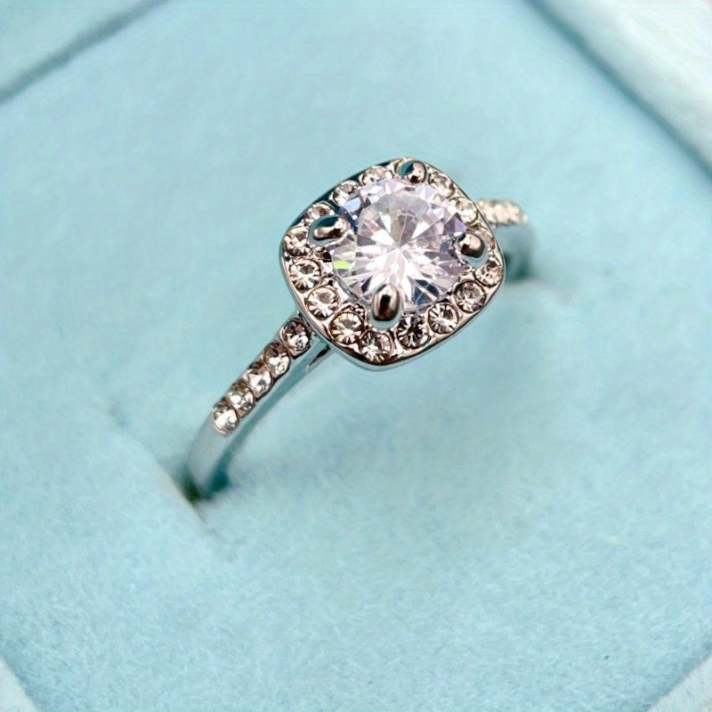 This beautiful promise ring features a square-shaped zircon stone inlay, perfect for wedding or engagement. It also makes a great anniversary gift.