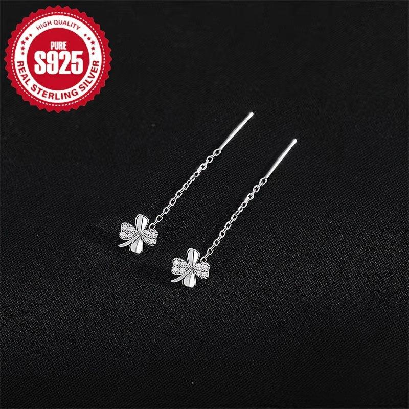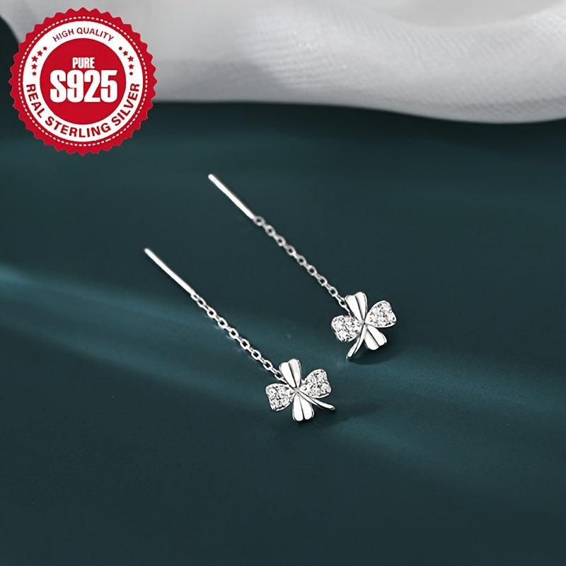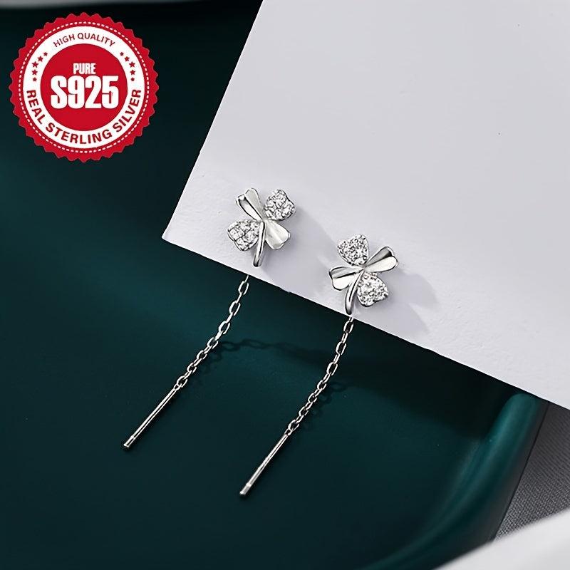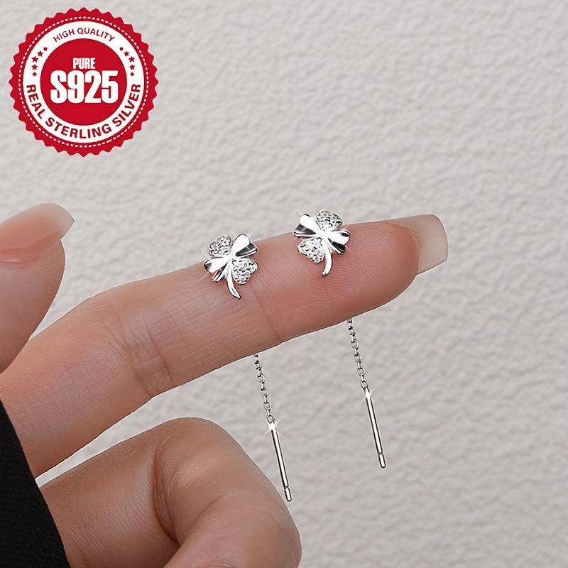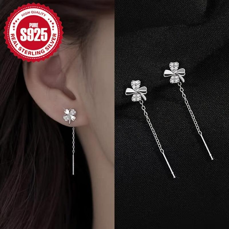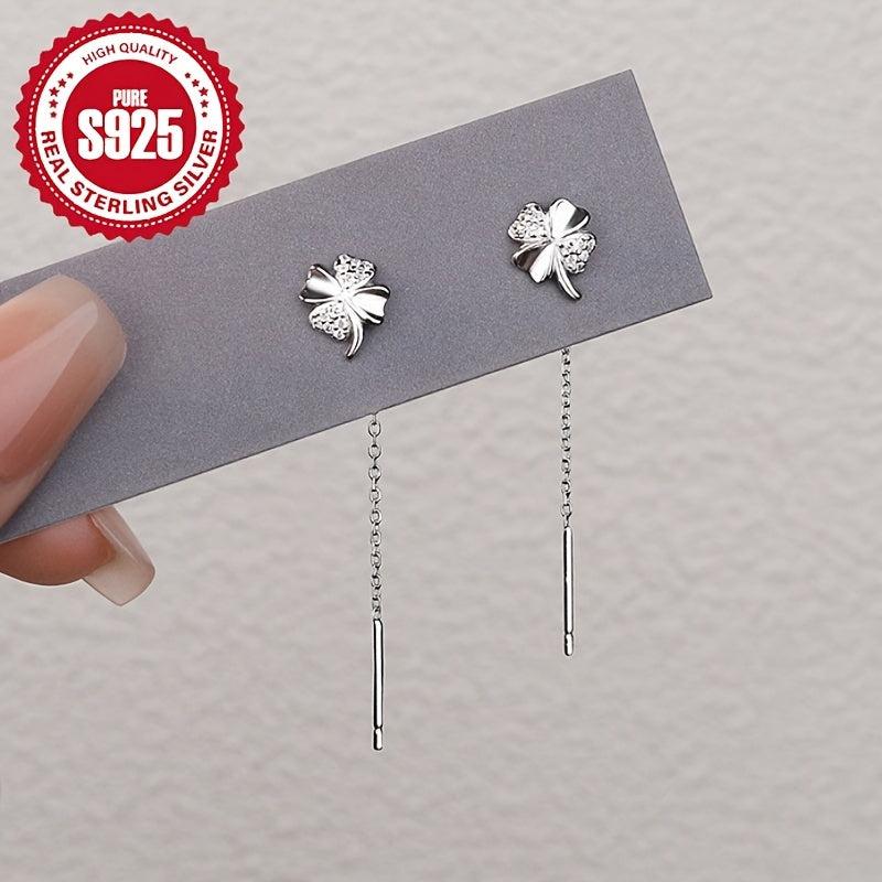 Clover Shaped Silvery Earrings For Women - Elegant Design