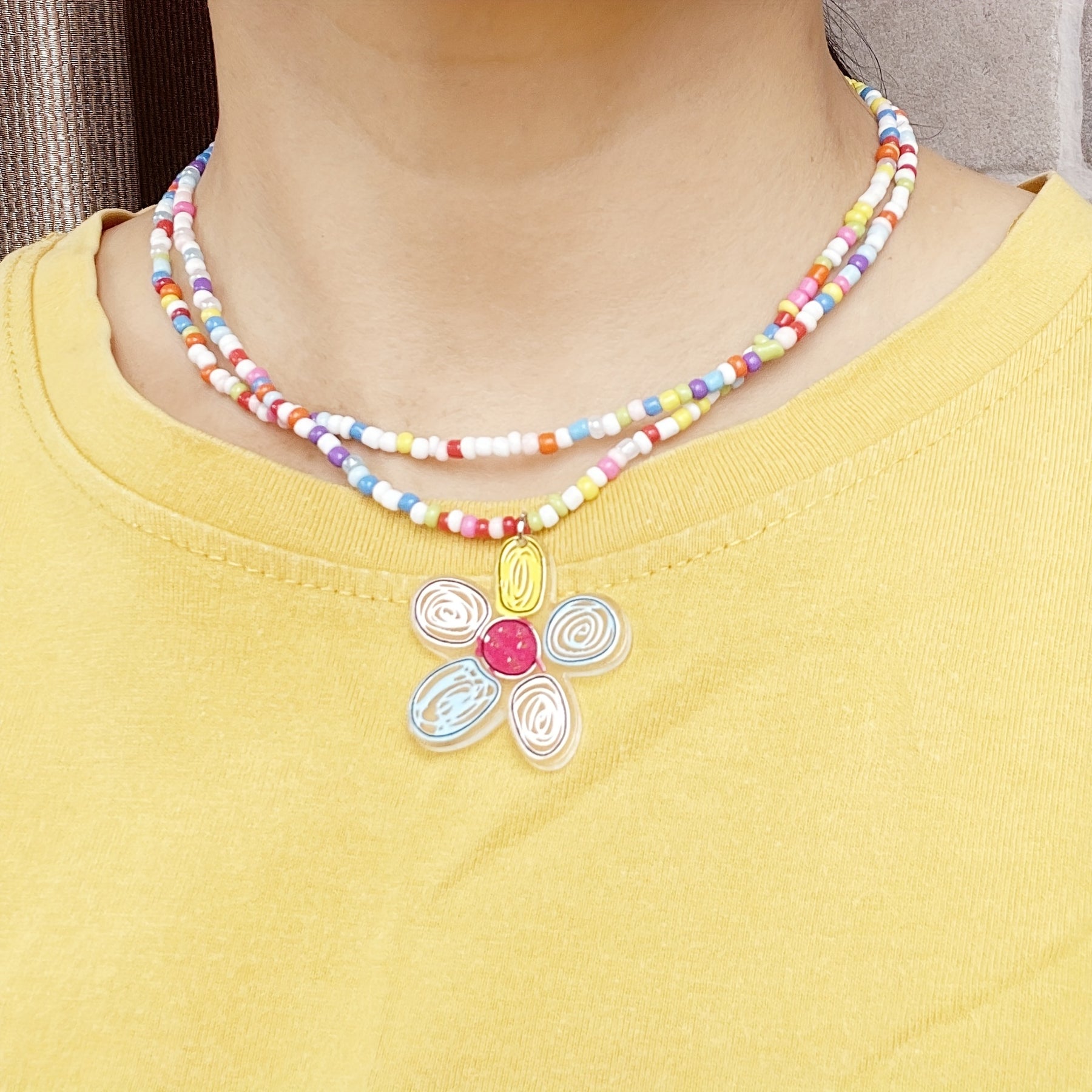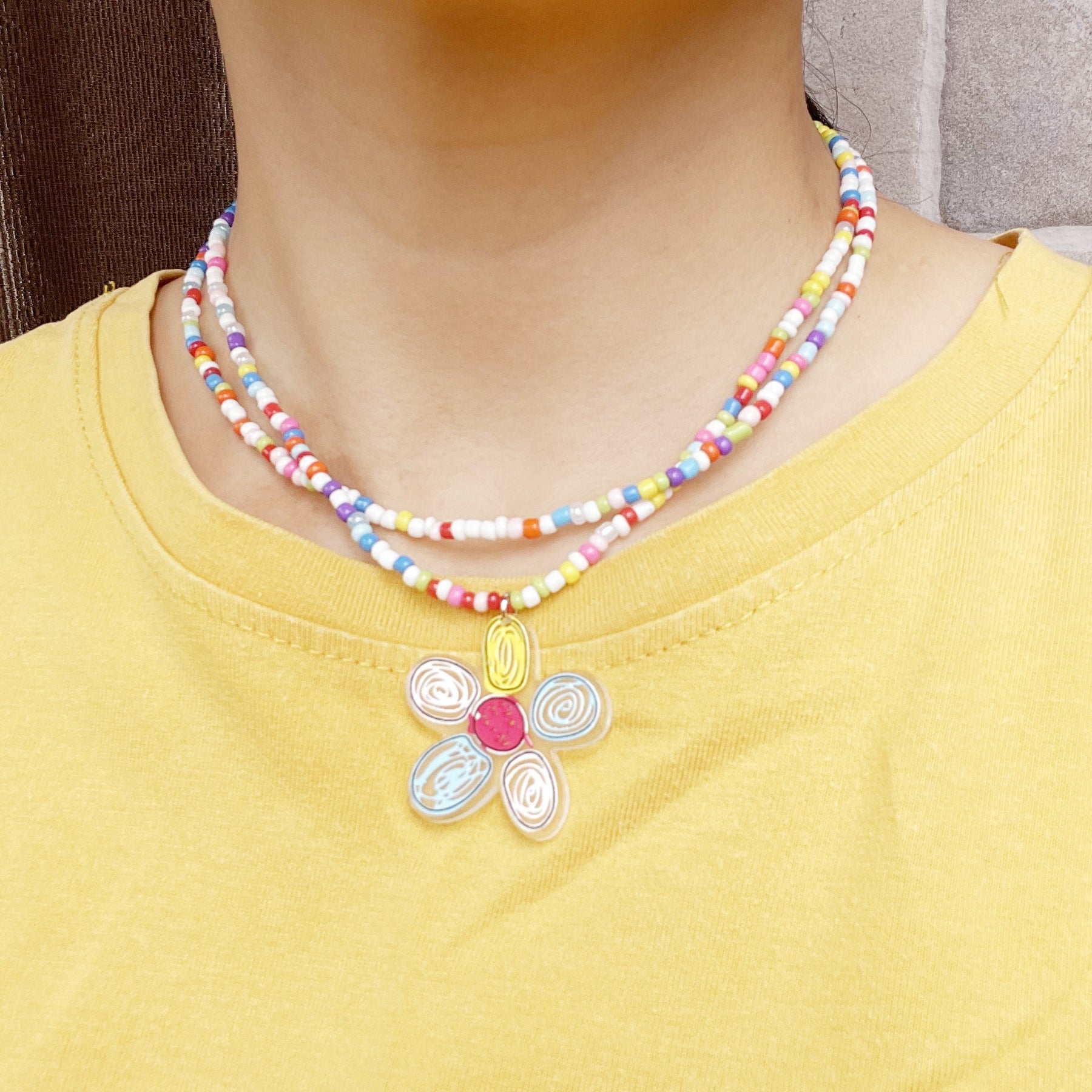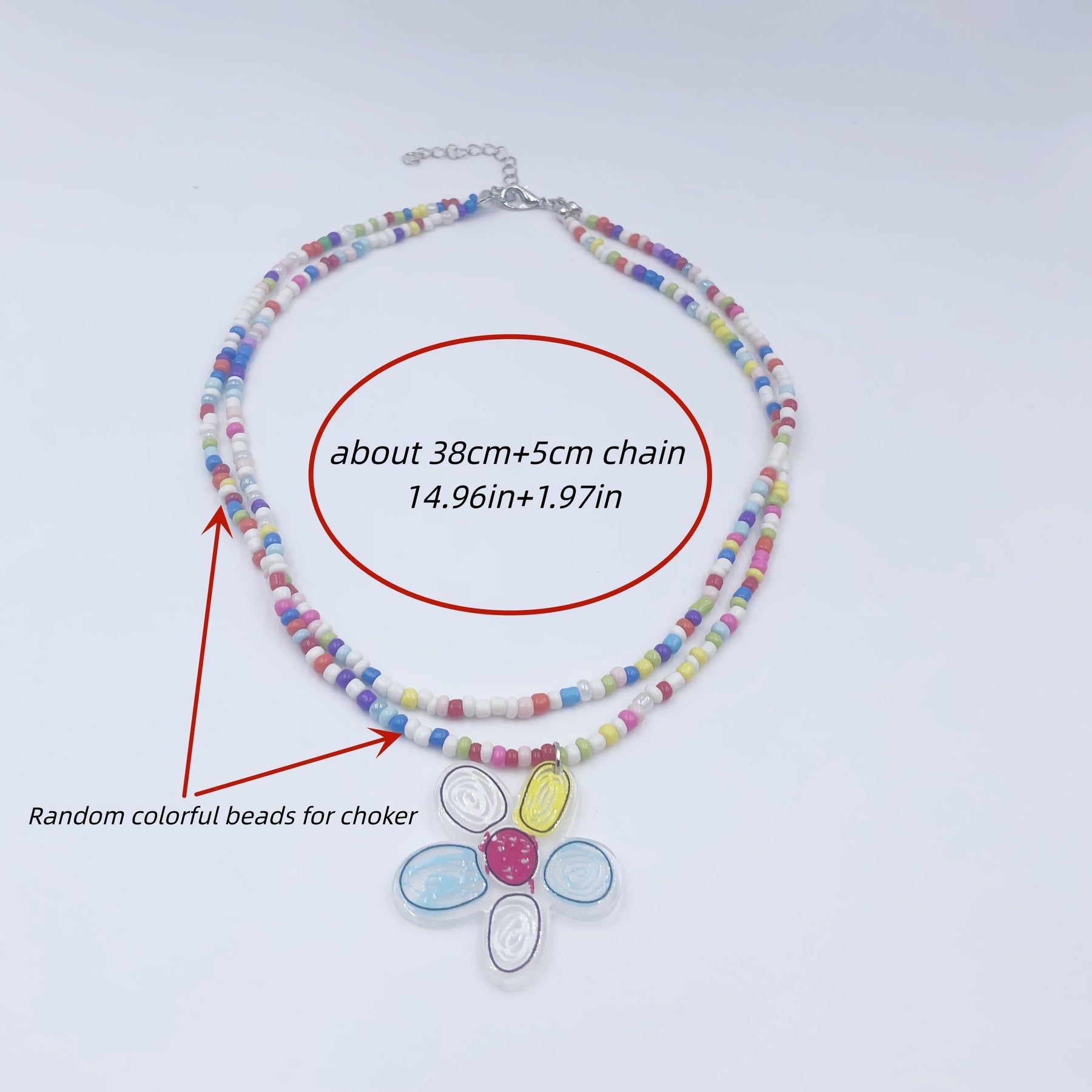 Colorful Beaded Necklace Flower Charm Pendant Jewelry for Women Girls