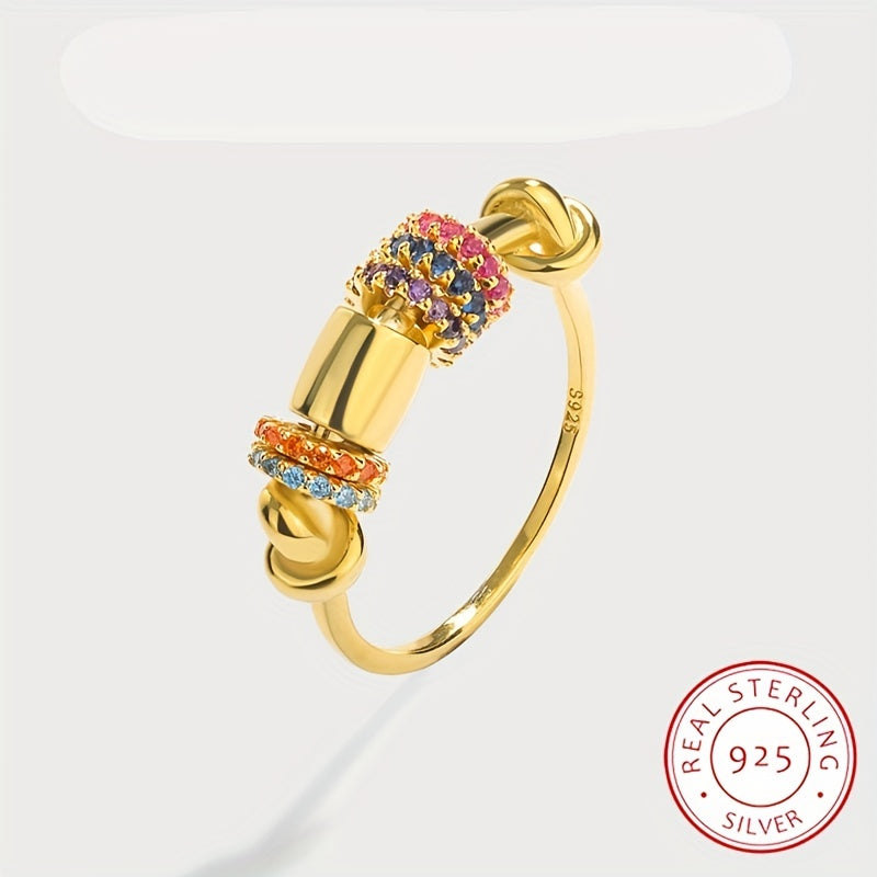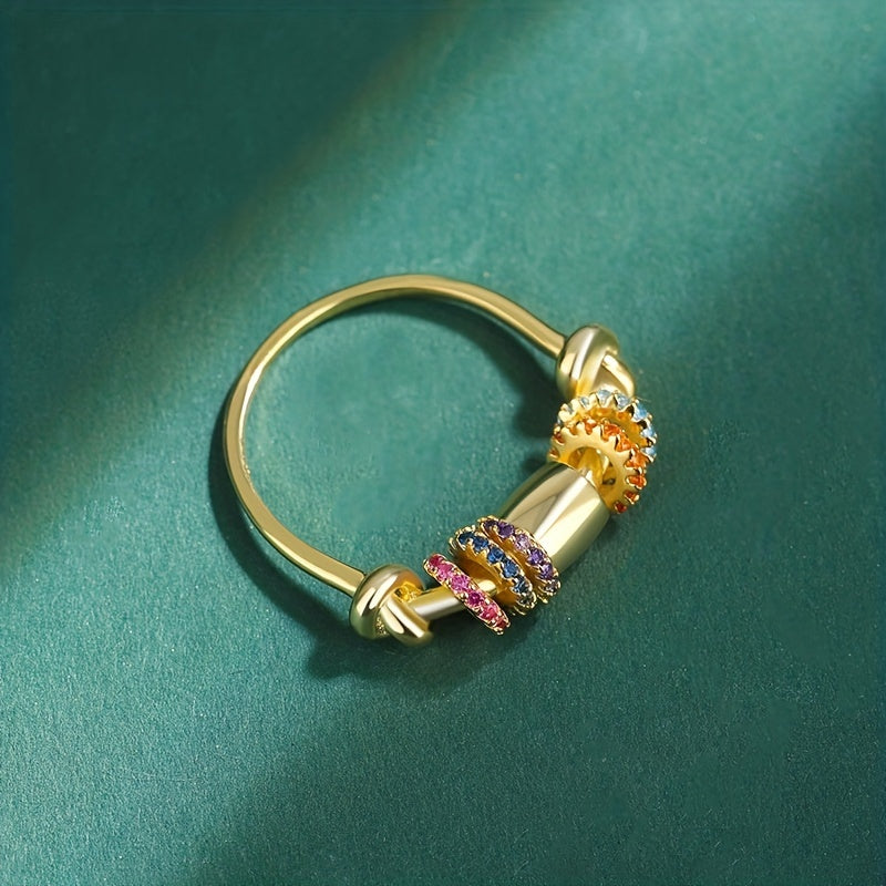 Colorful Beads Spinner Swivel Ring for Women - Fidget Jewelry