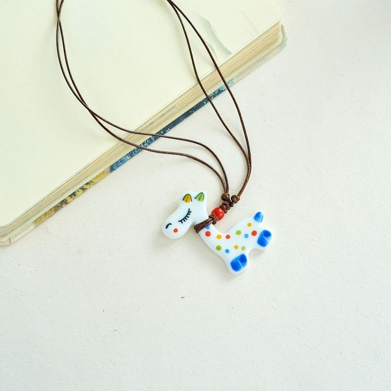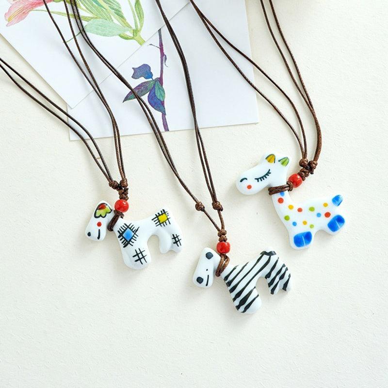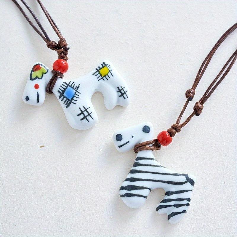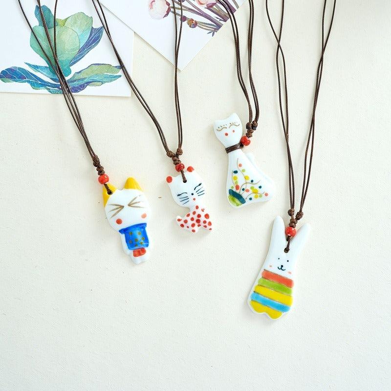 Colorful Ceramic Cat & Dog Pendant Necklace for Casual Attire