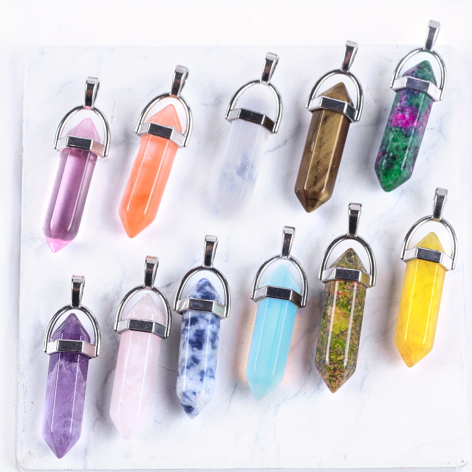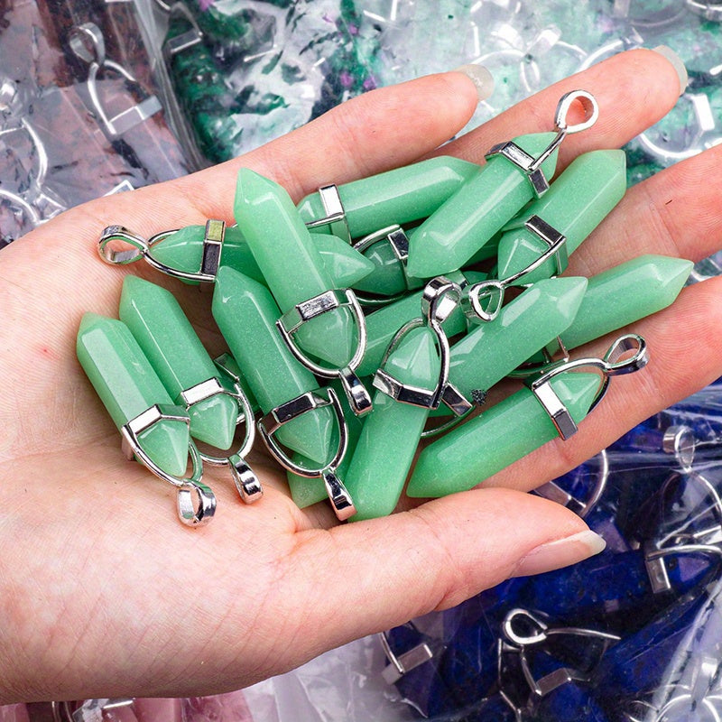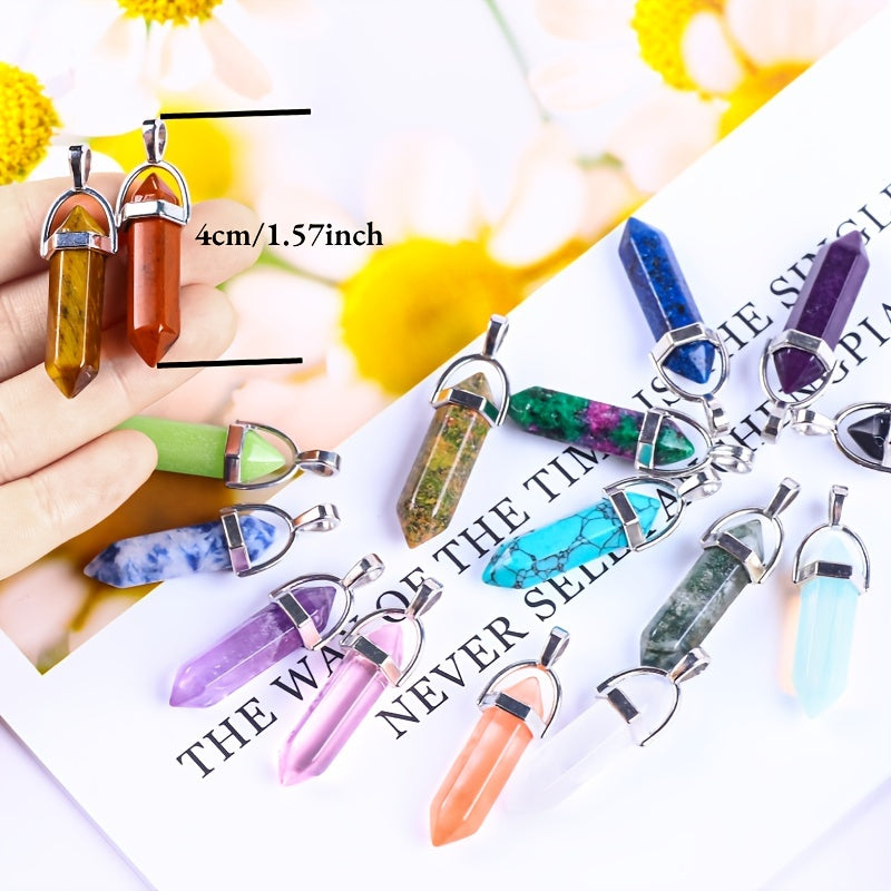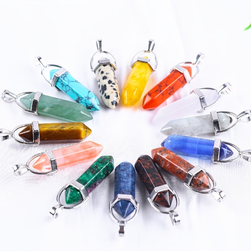 This hexagonal chakra pendant features a bullet crystal design made of gemstone quartz, perfect for creating stunning jewelry pieces.