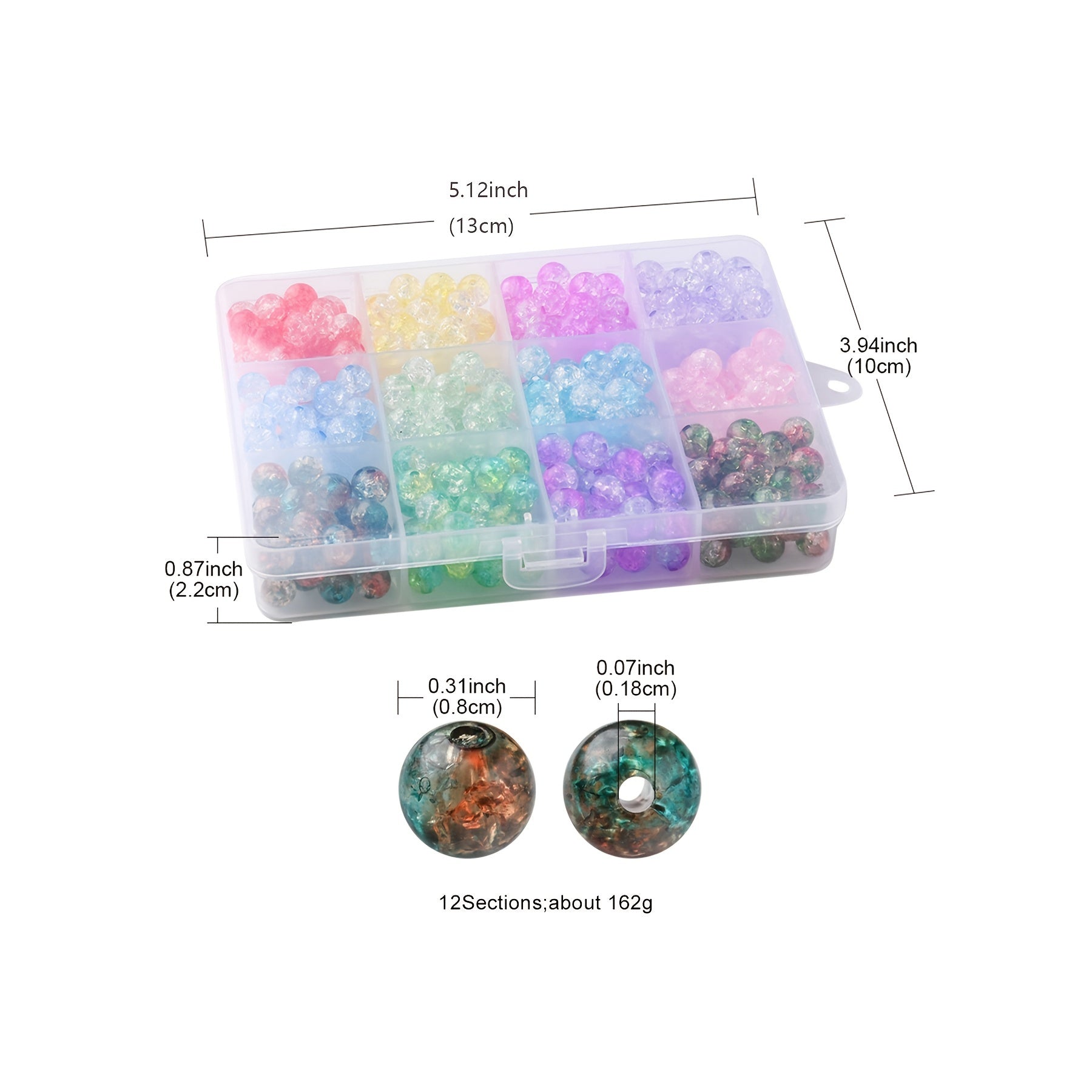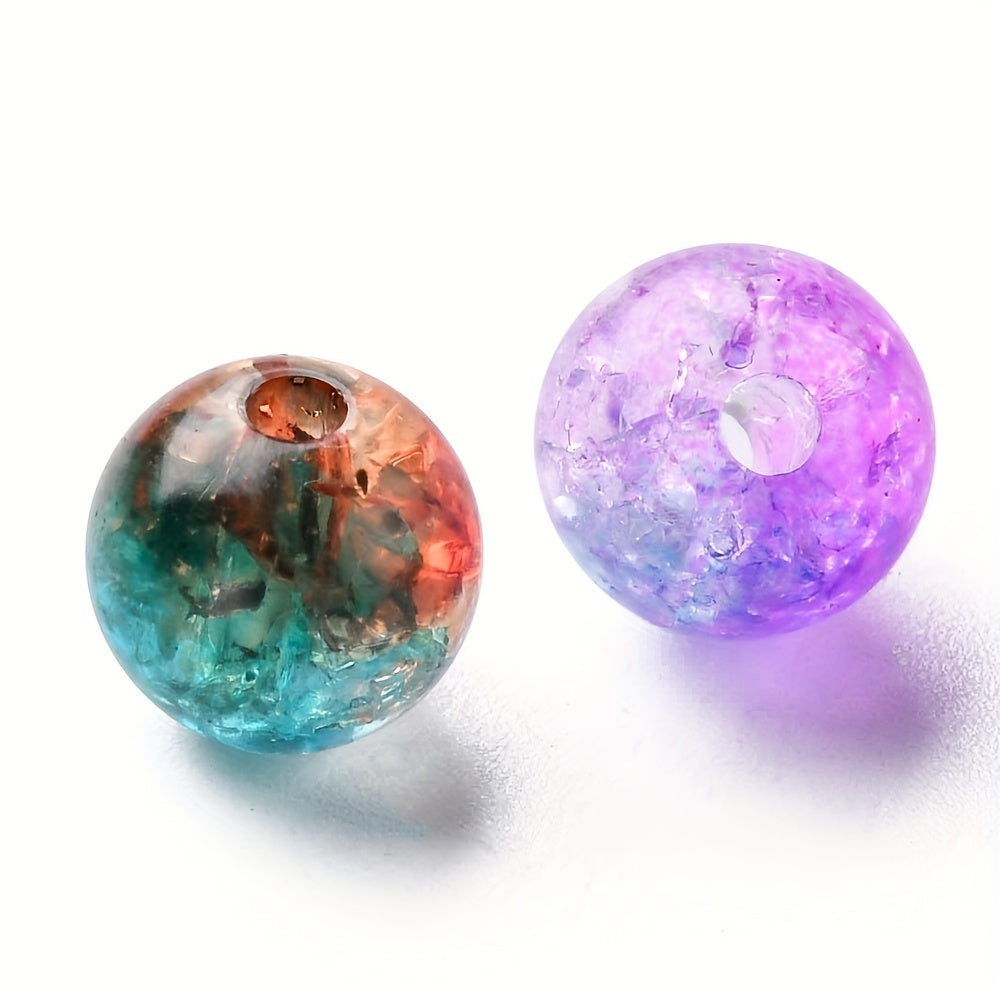This set includes 8mm round acrylic beads in a variety of vibrant colors with a crackle glass pattern. Perfect for creating your own earrings, bracelets, necklaces, and other accessories.