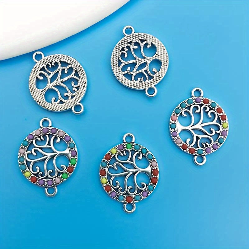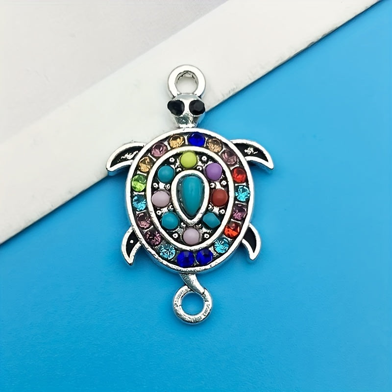 Enhance your DIY jewelry projects with these 6pcs colorful crystal antique silvery tree blossom, turtle, and dragonfly connectors. Perfect for adding a pop of color and style to your creations.